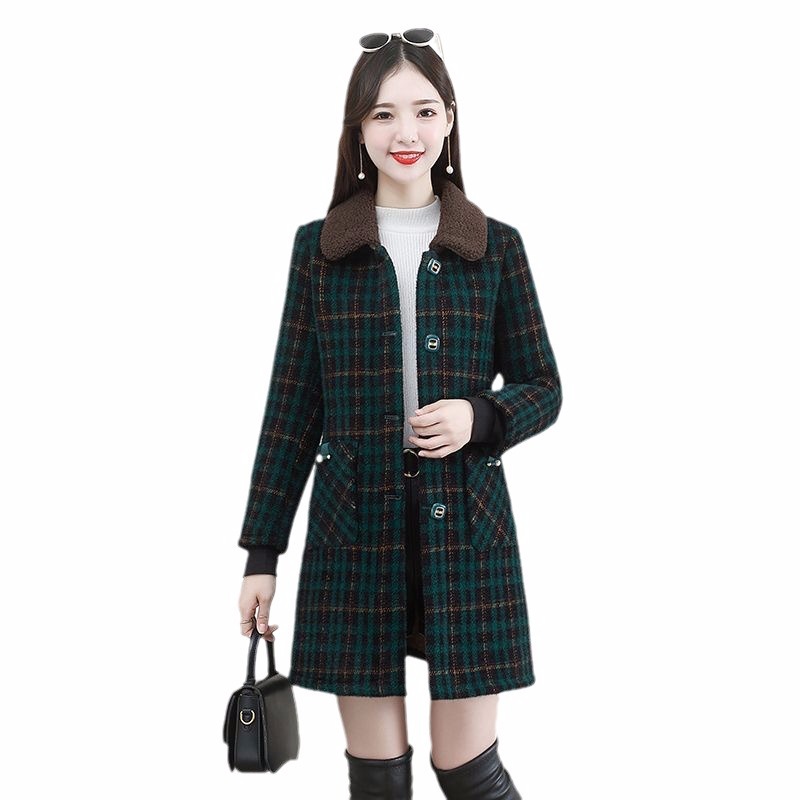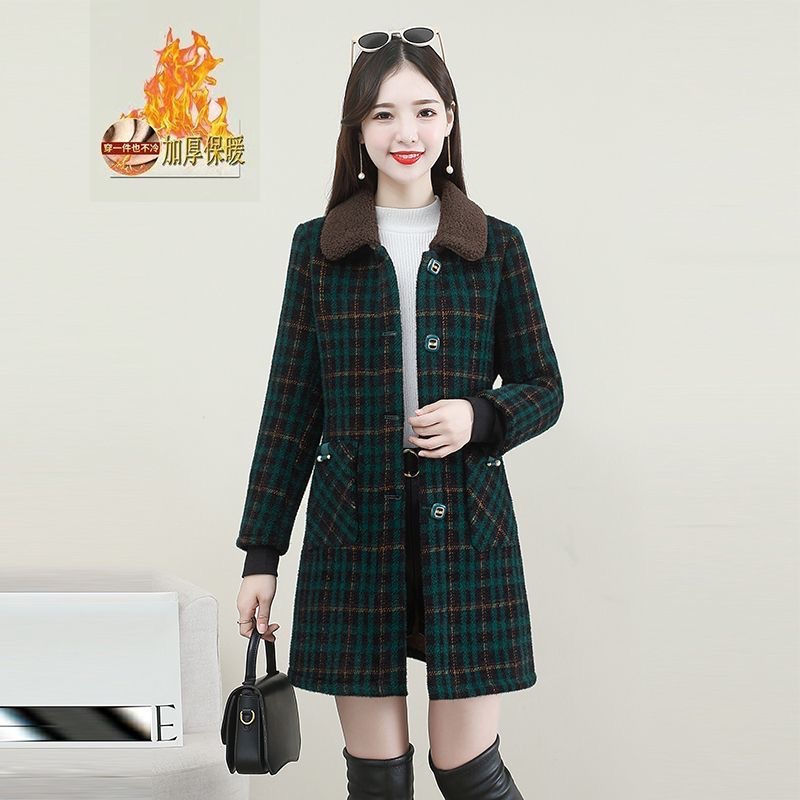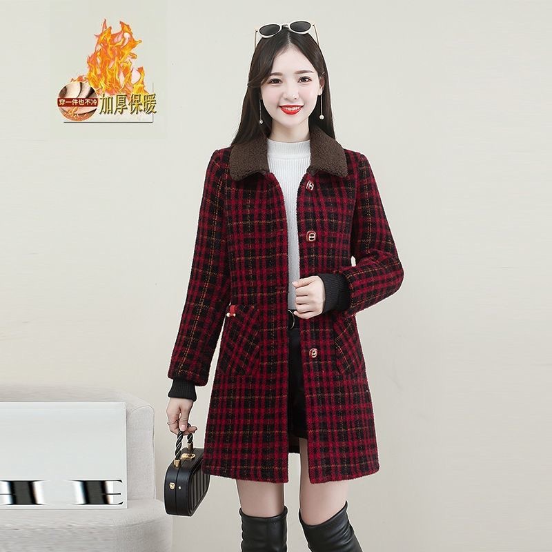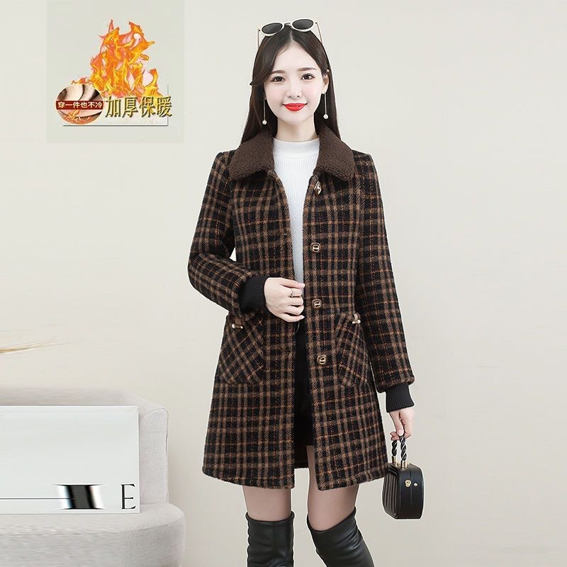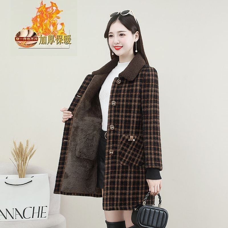 | nameOriginal | Fleece-lined thickened coat women's winter plaid slimming coat mother's wear plus size mid-length western style warm coat |