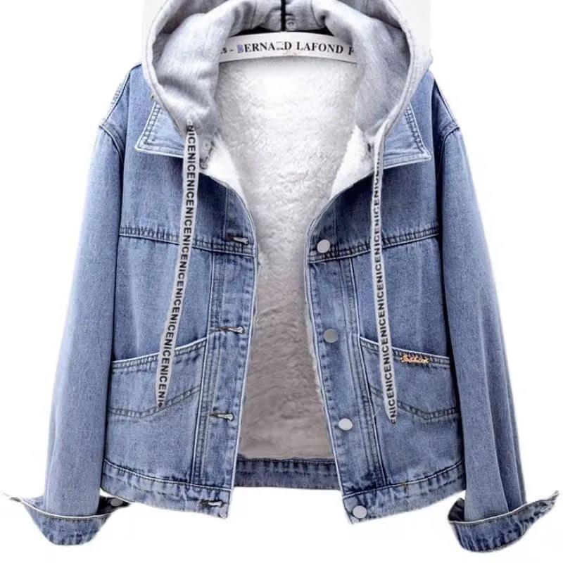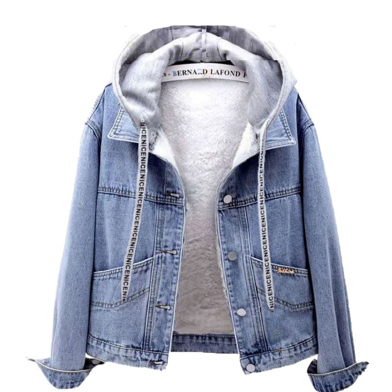 | nameOriginal | Fleece-lined thickened Denim coat women's short 2024 autumn and winter New hooded loose Korean style cotton-padded jacket warm top |