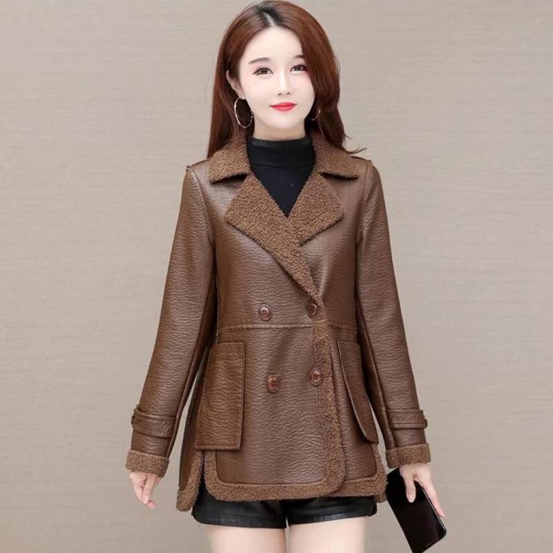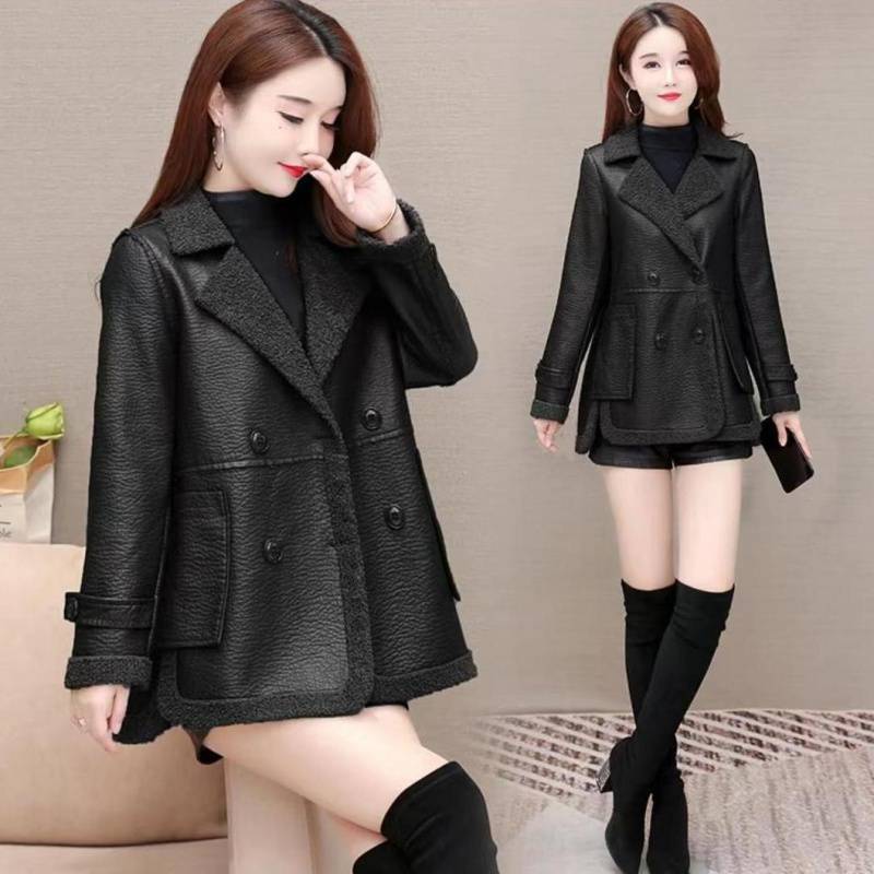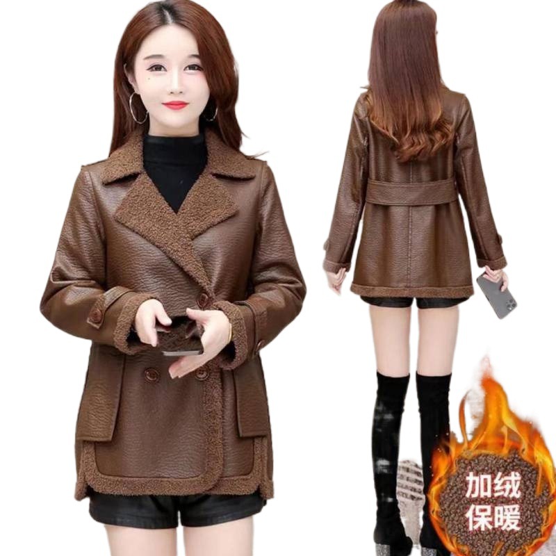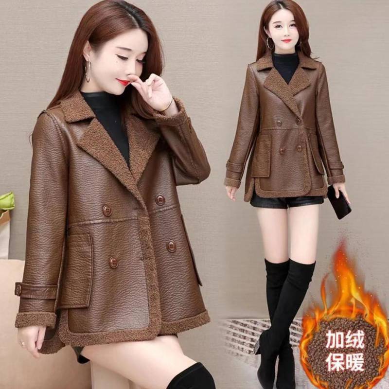| nameOriginal | Fleece-lined thickened new autumn and winter Haining fur integrated fur women's coat loose double-sided leather coat |