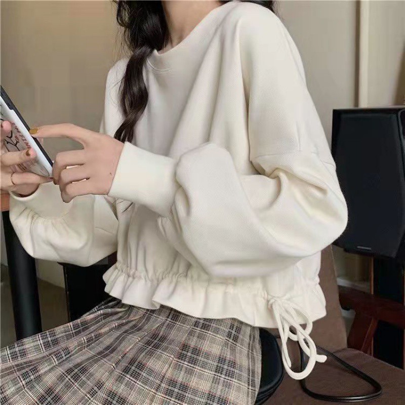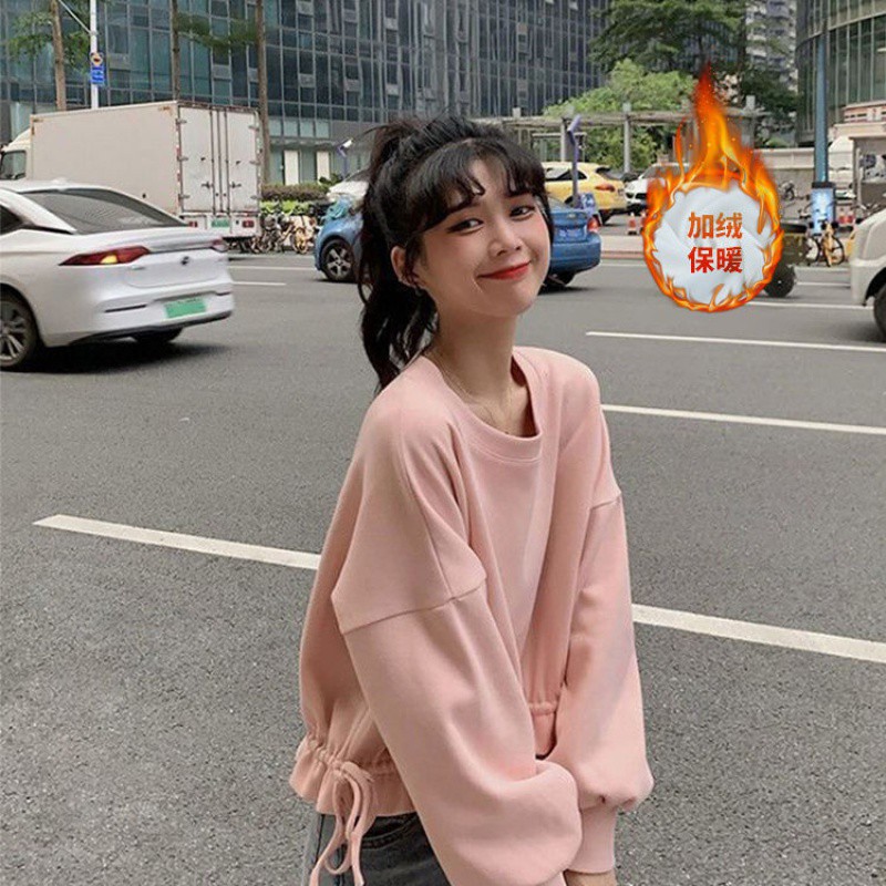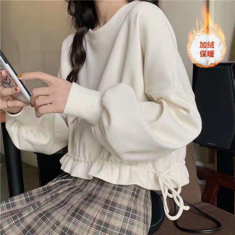 | nameOriginal | fleece-lined Thickened Sweat Women's Trendy Ins Hong Kong-style Design Sense Niche Short Long-sleeved Sweat Academic-style Pullover Top |