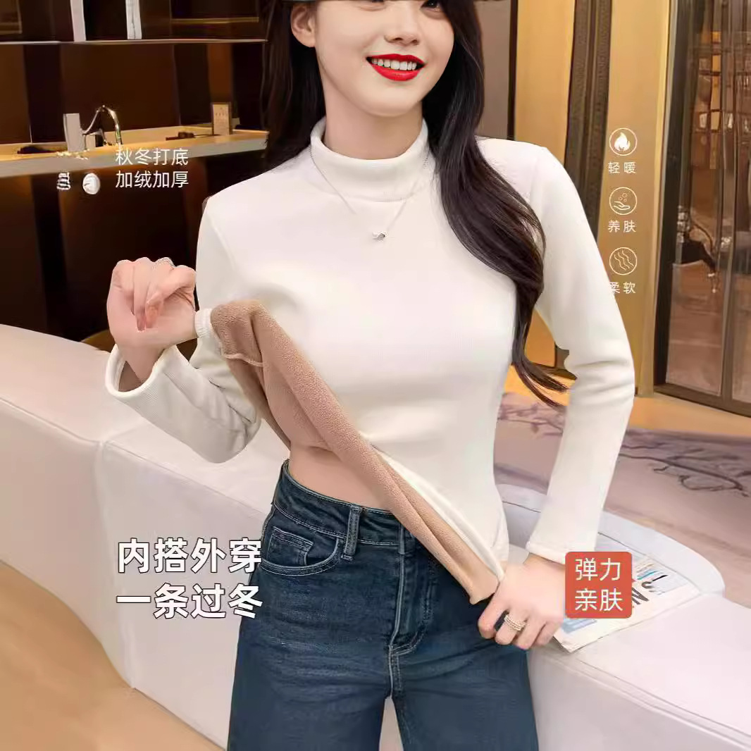 | nameOriginal | fleece-lined Thickened Winter Warm Threaded Middle Collar Base Shirt Women's Inner Slim-fit Half-high Collar Long-sleeved High-end Top |