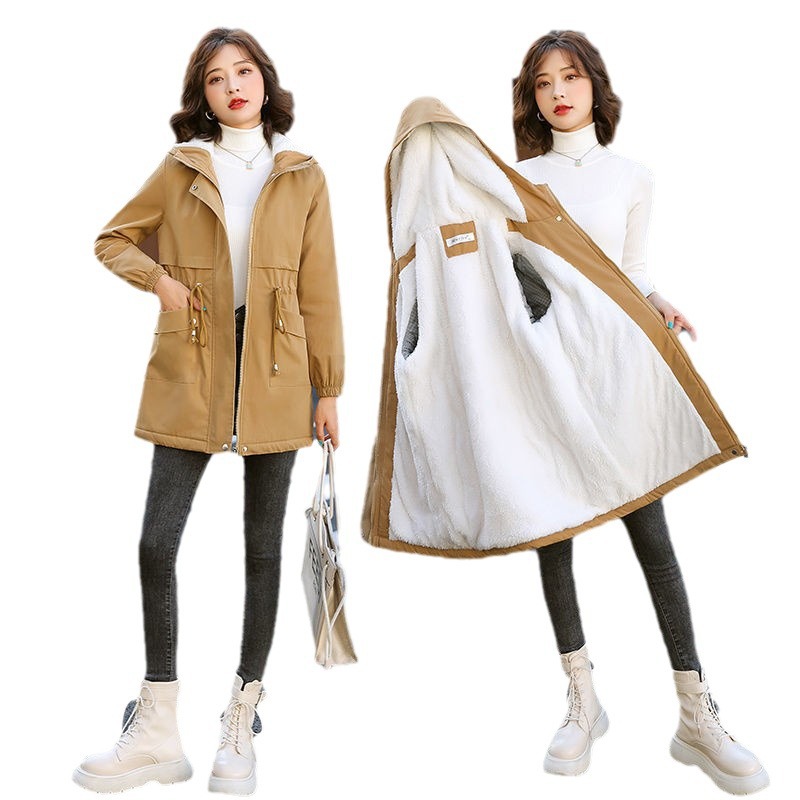 | nameOriginal | Fleece-lined trench coat for women 2023 new winter Korean style casual loose overcoat Western style thickened mid-length cotton-padded coat |