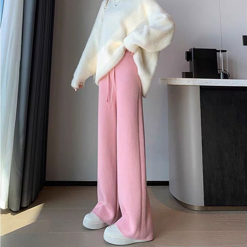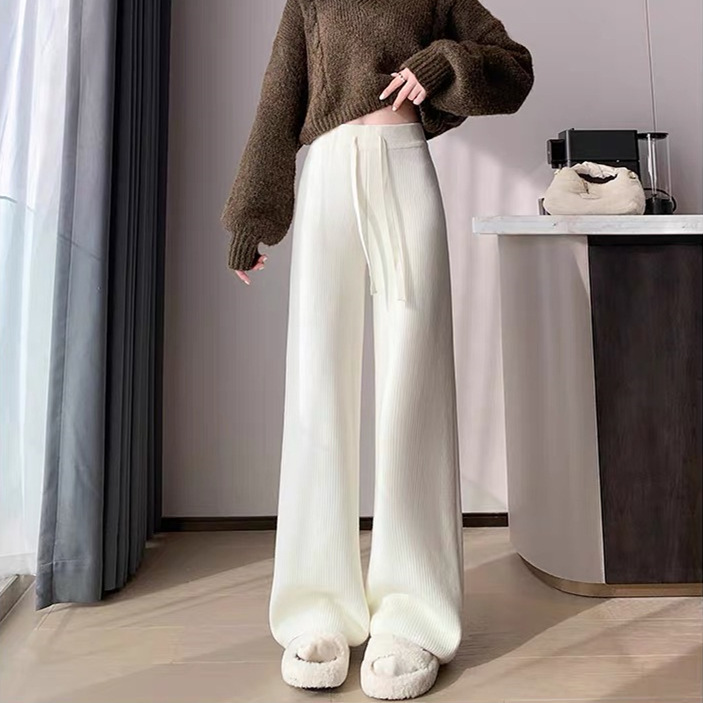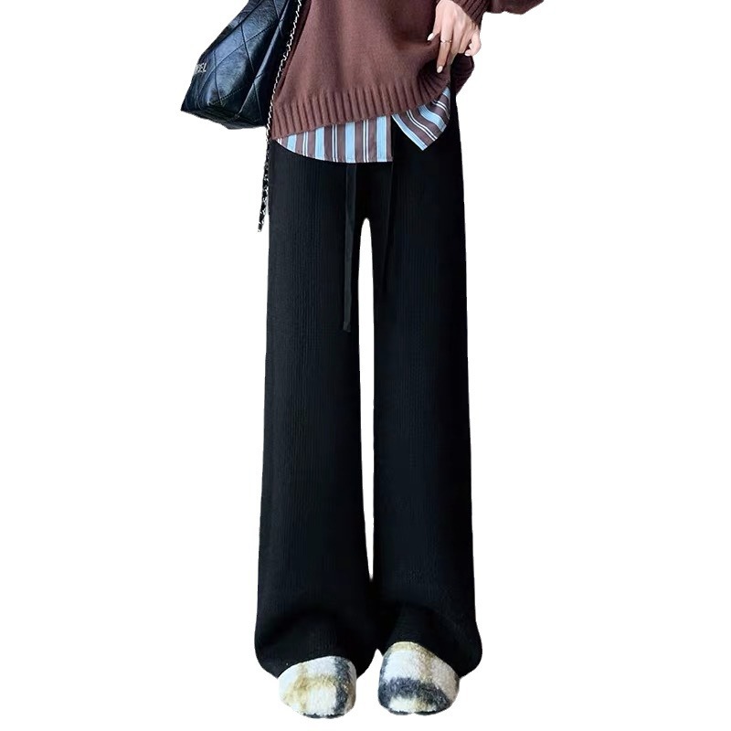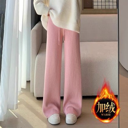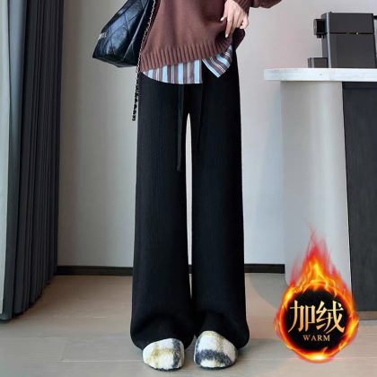 fleece-lined Warm Knitted Wide-leg Pants Women’s Autumn and Winter New Thickened One-piece Velvet High Waist Dosing Casual Straight Floor Pants