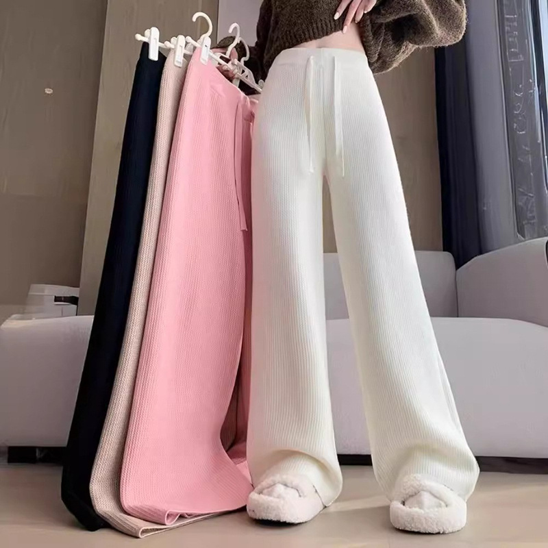 | nameOriginal | fleece-lined Warm Knitted Wide-leg Pants Women's Autumn and Winter New Thickened One-piece Velvet High Waist Dosing Casual Straight Floor Pants |