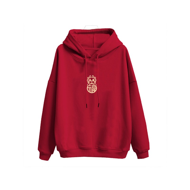 | nameOriginal | Fleece-lined year of the Dragon New Year red hooded sweater women's 2024 autumn and winter New Western style top birth year coat |
