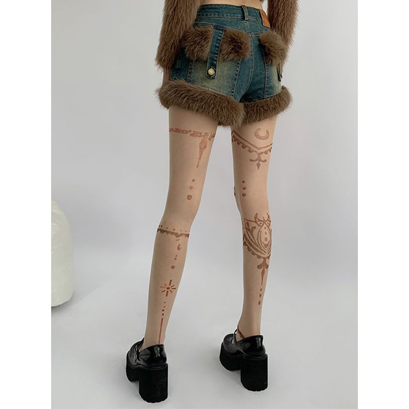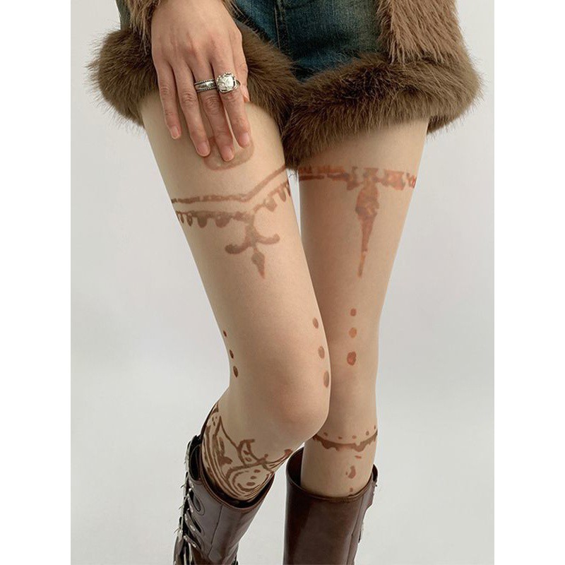 | nameOriginal | Fleshy Silk Stockings Spring and Autumn Millennium Spice Henna Tattoo Socks Y2K Subculture Pantyhose |