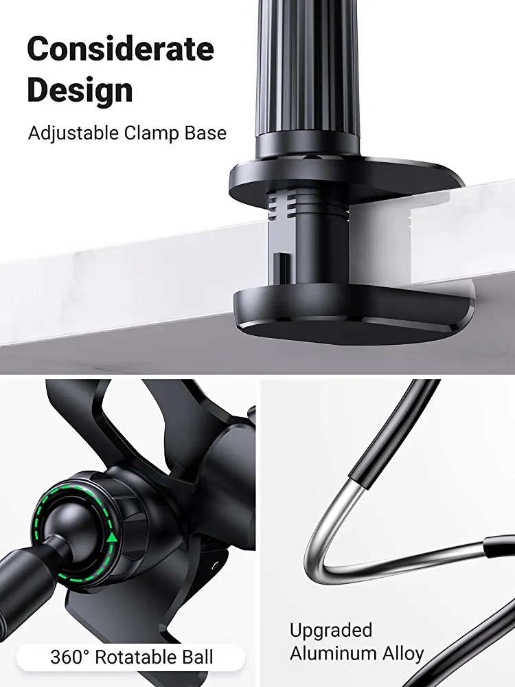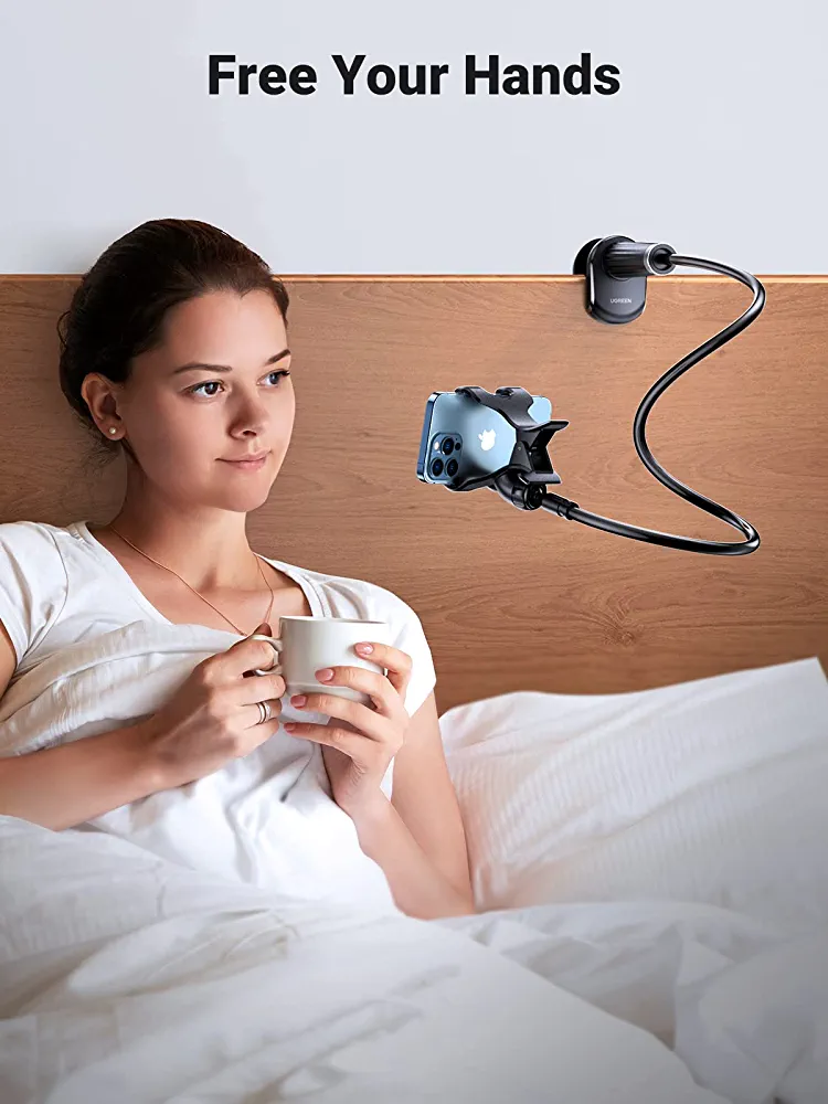 | nameOriginal | UGREEN Gooseneck Phone Holder 360 Adjustable Lazy Holder Mount Clamp with Sturdy Flexible Long Arm Compatible for Most Phones, iPhone 14 Pro/Pro Max, Samsung Galaxy, all 4"-7.1" Phones(Black) |