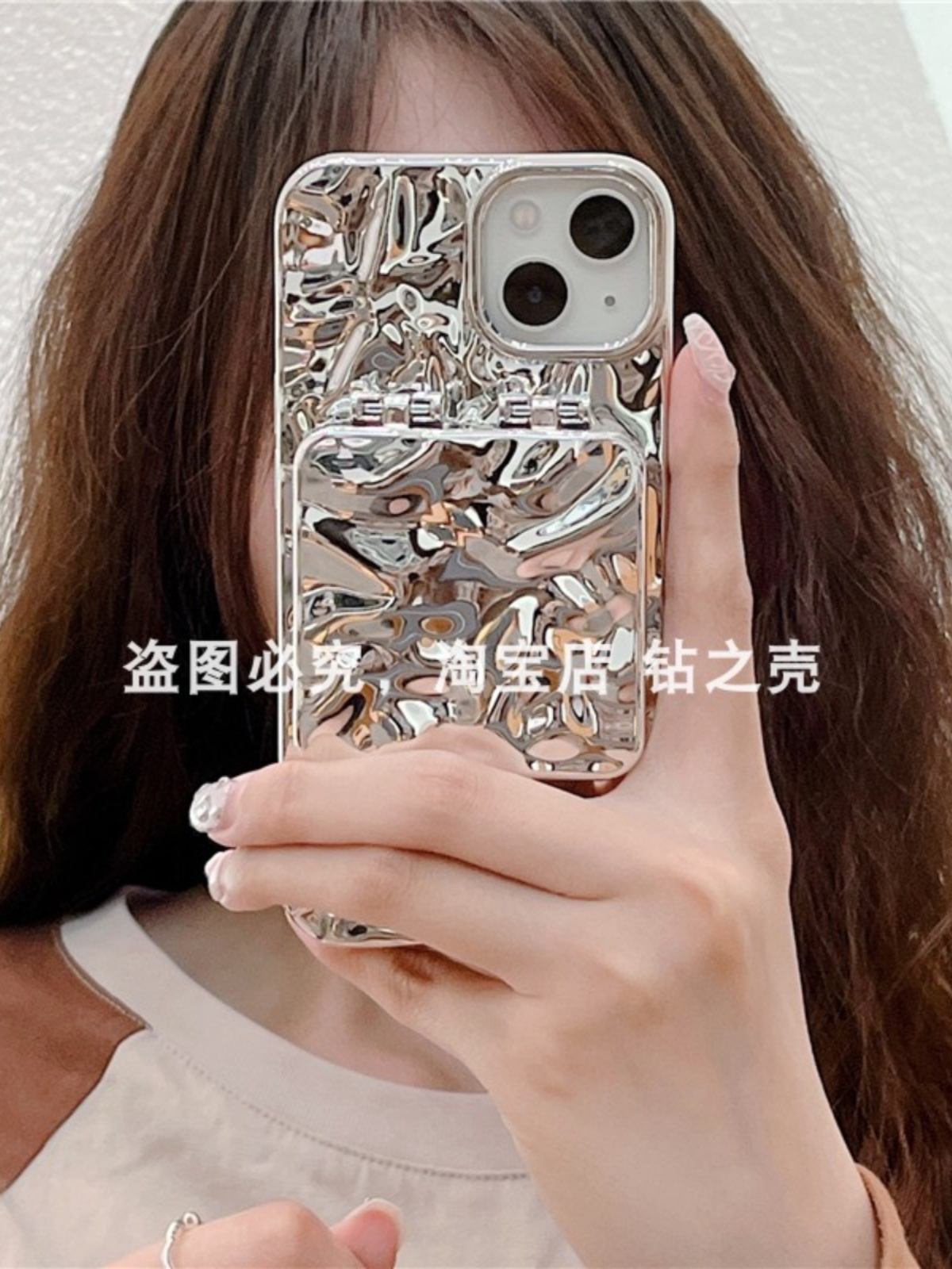 | nameOriginal | Flip mirror suitable for iphone15/14promax folding makeup mirror electroplated mobile phone case 13pro bracket tin foil 11 apple 12 pleated wrinkle silver high-end protective case creative new style |
