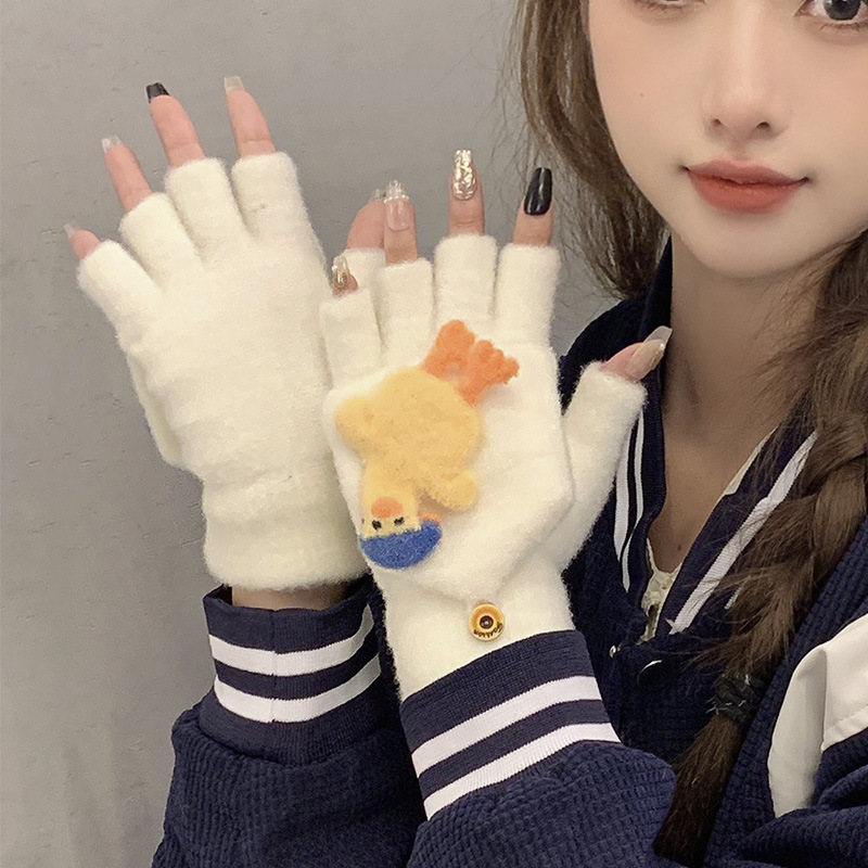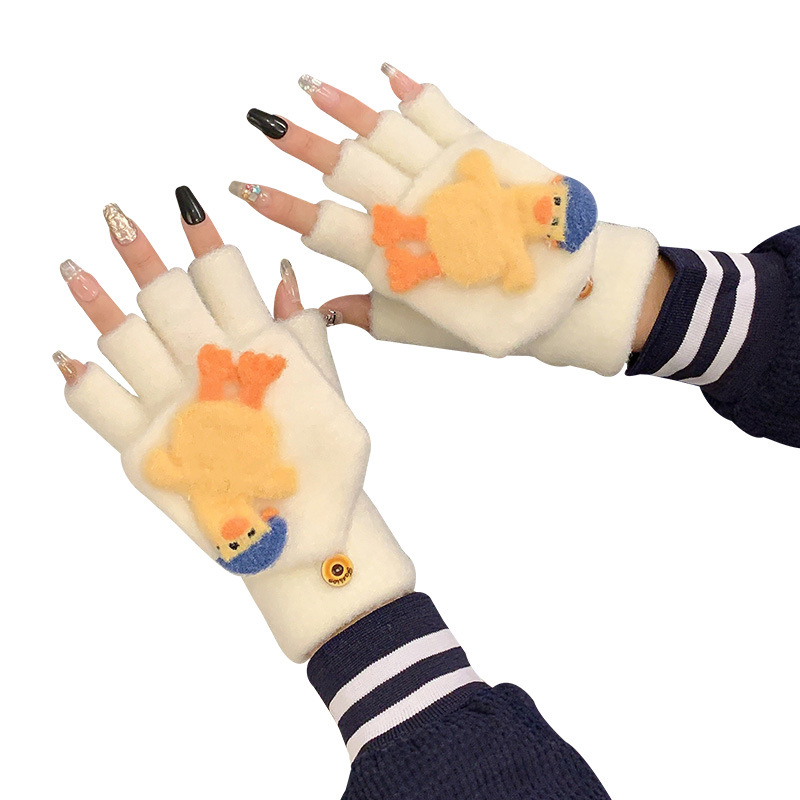 Flip plush gloves female cute cartoon warm gloves student thickened riding cold-proof winter plus velvet gloves
