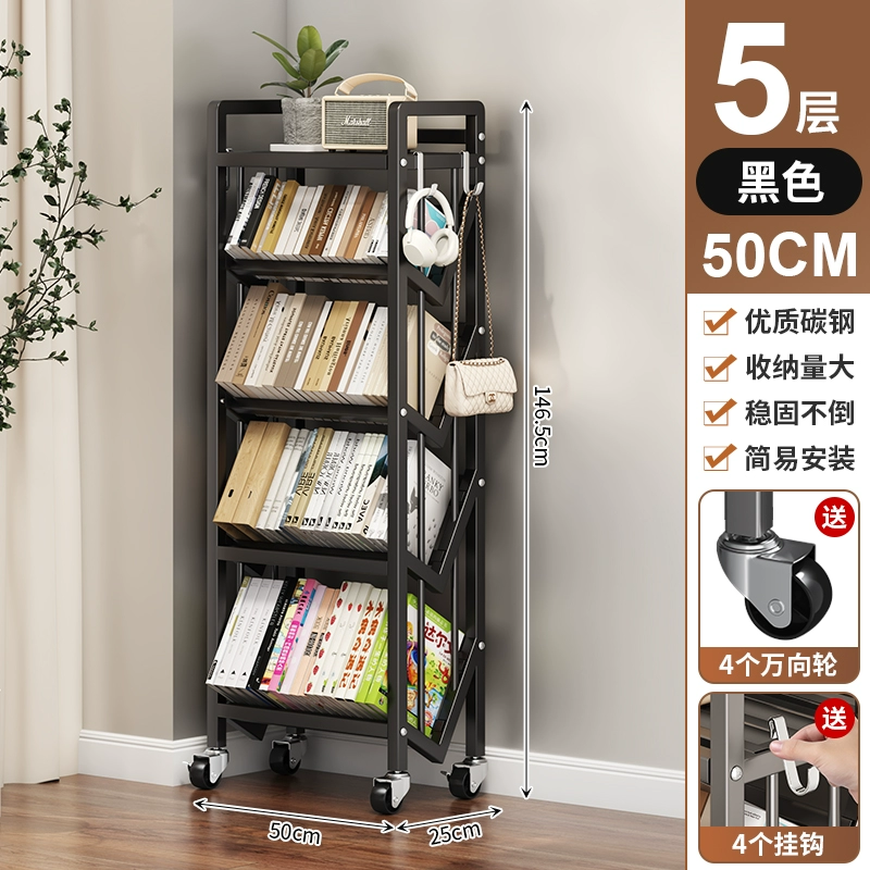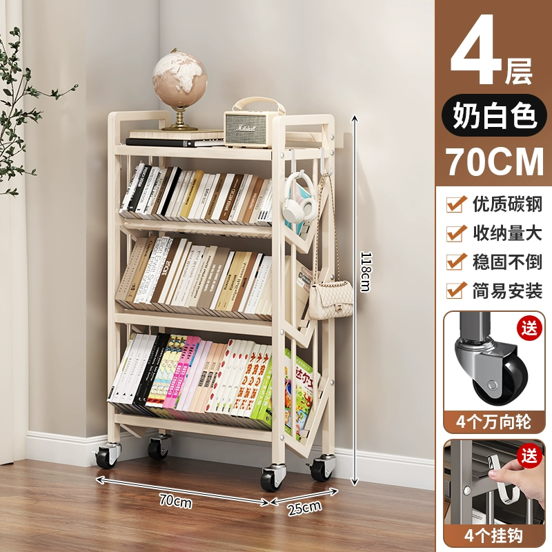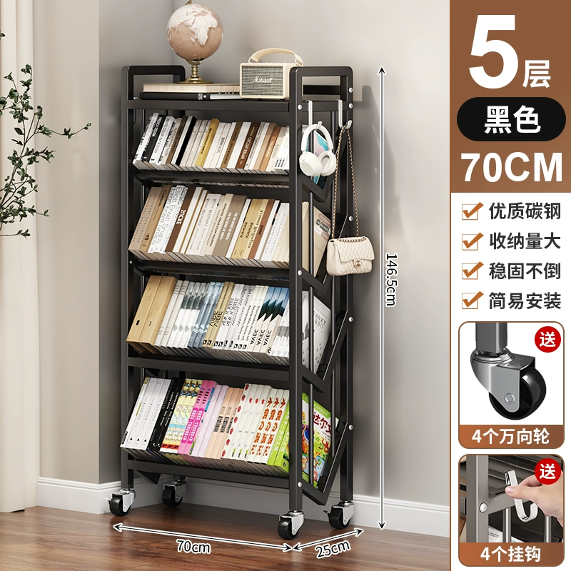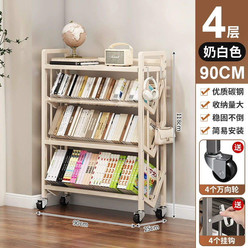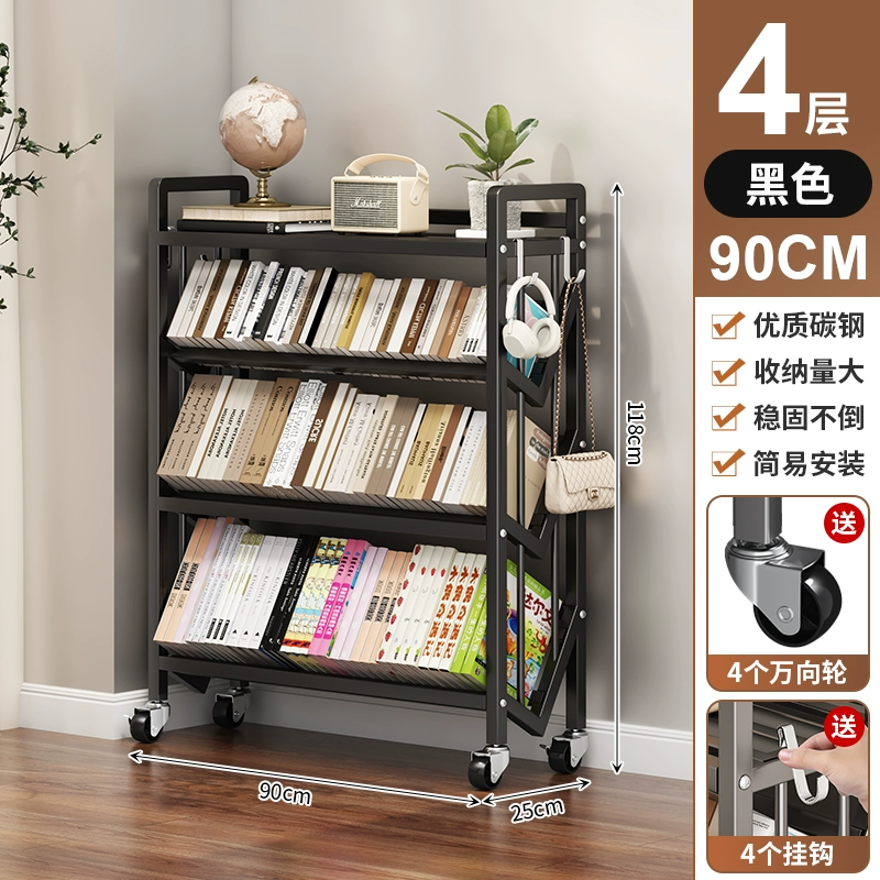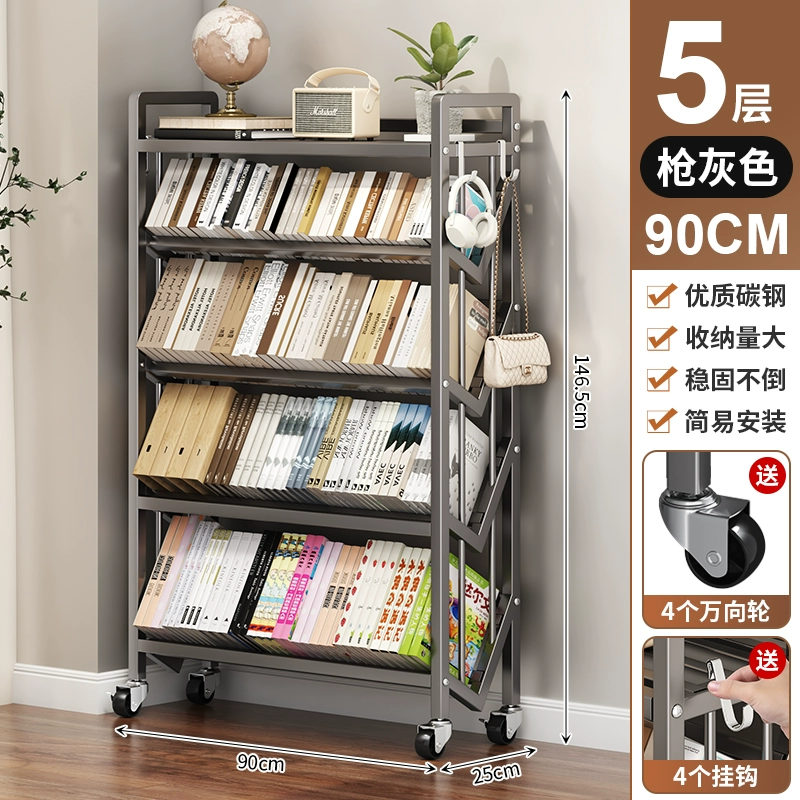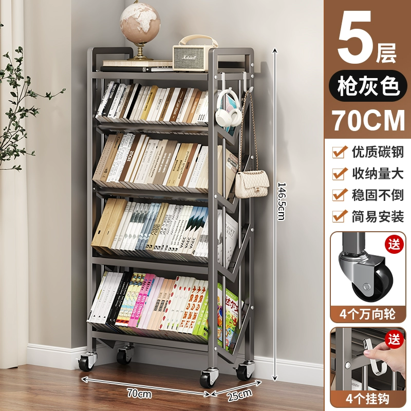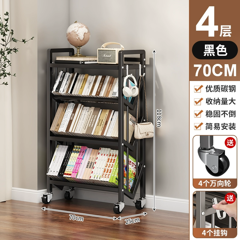 Floor-standing bookshelf storage rack children's library wrought iron bedroom living room removable pulleys simple bookcase