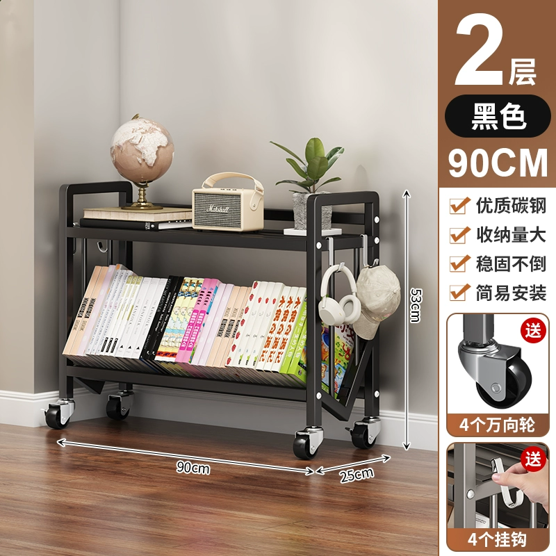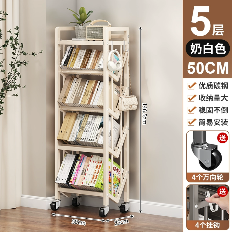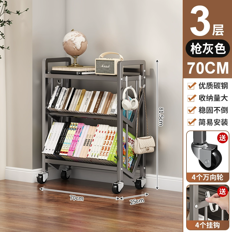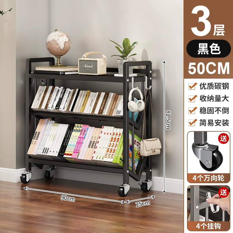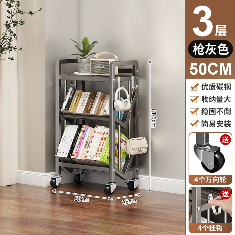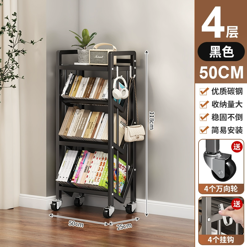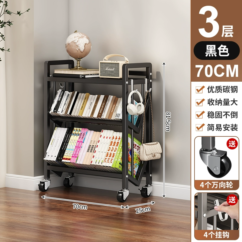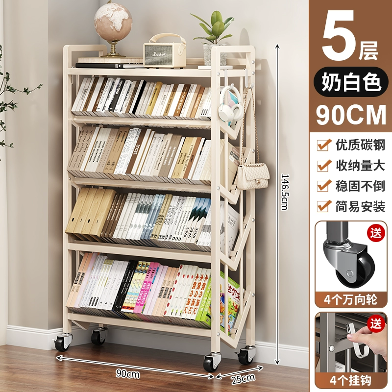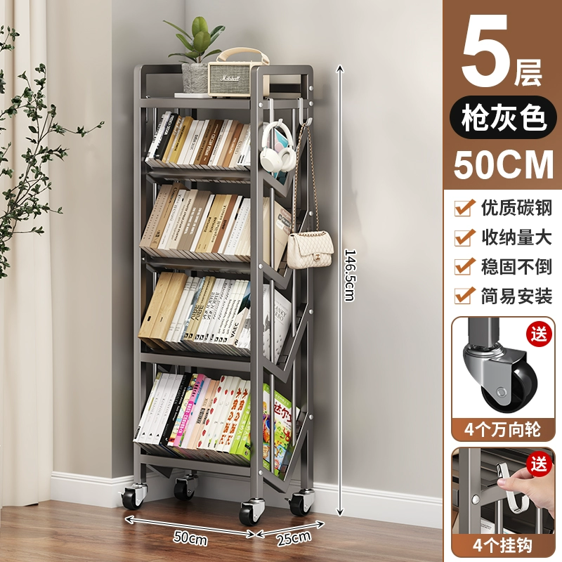 Floor-standing bookshelf storage rack children's library wrought iron bedroom living room removable pulleys simple bookcase