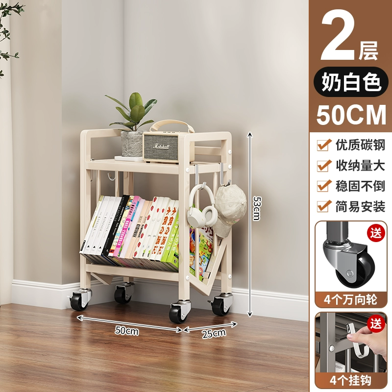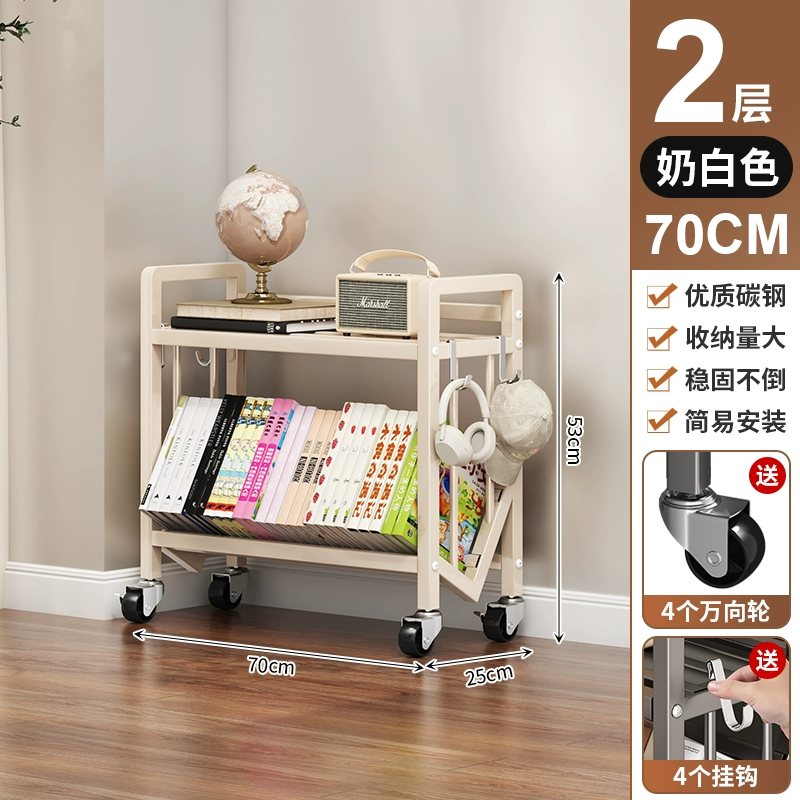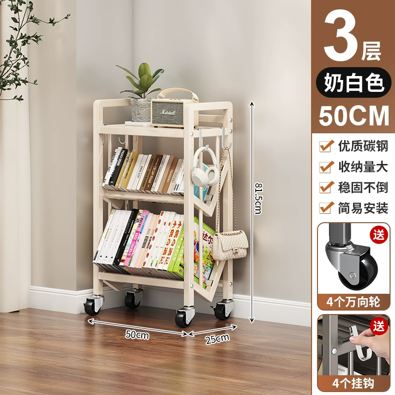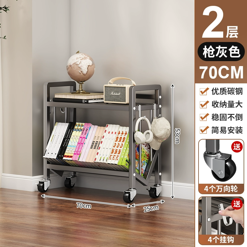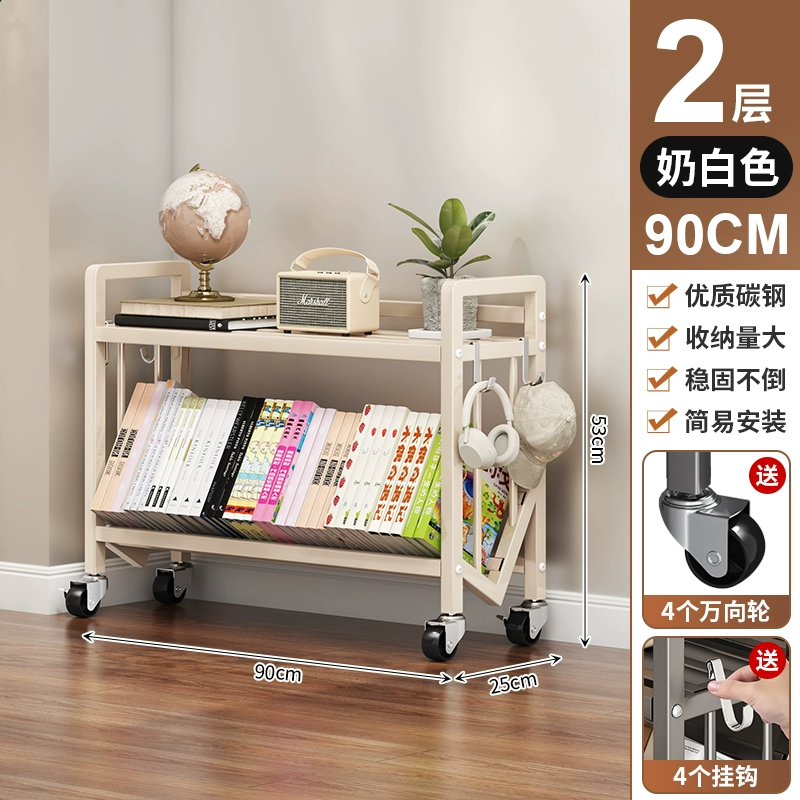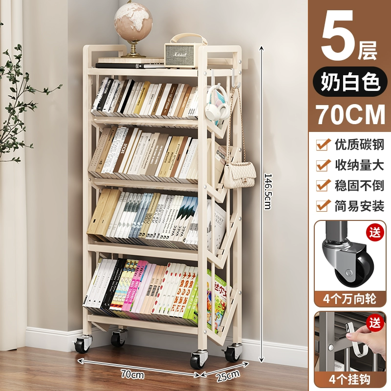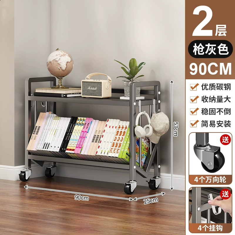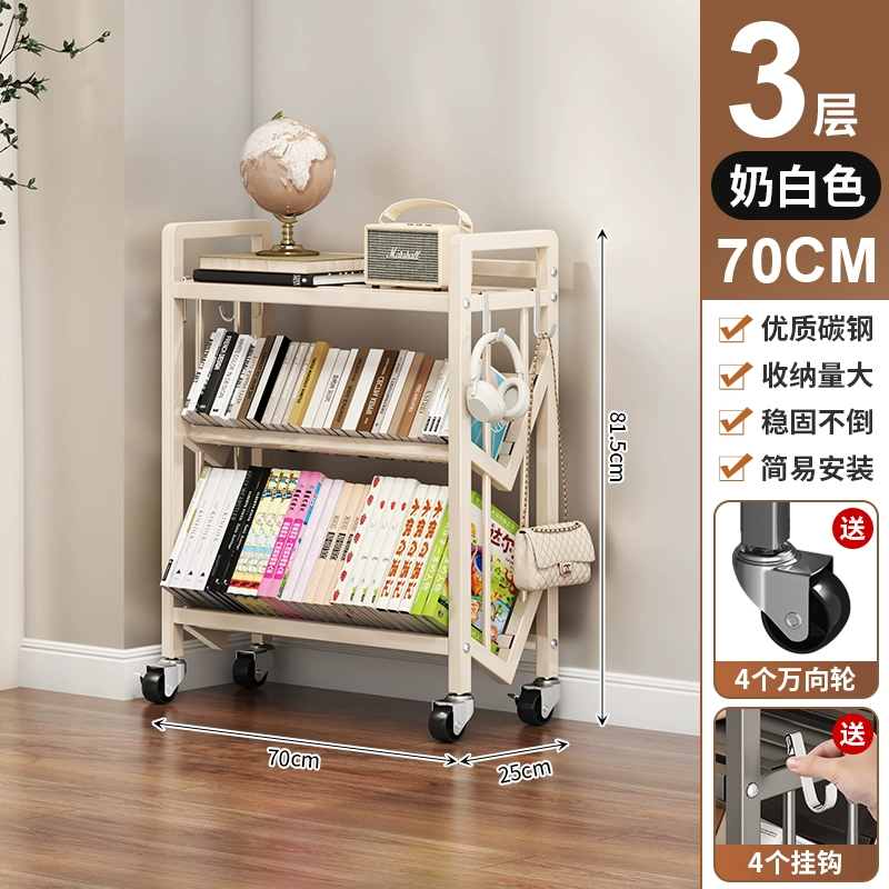 Floor-standing bookshelf storage rack children's library wrought iron bedroom living room removable pulleys simple bookcase