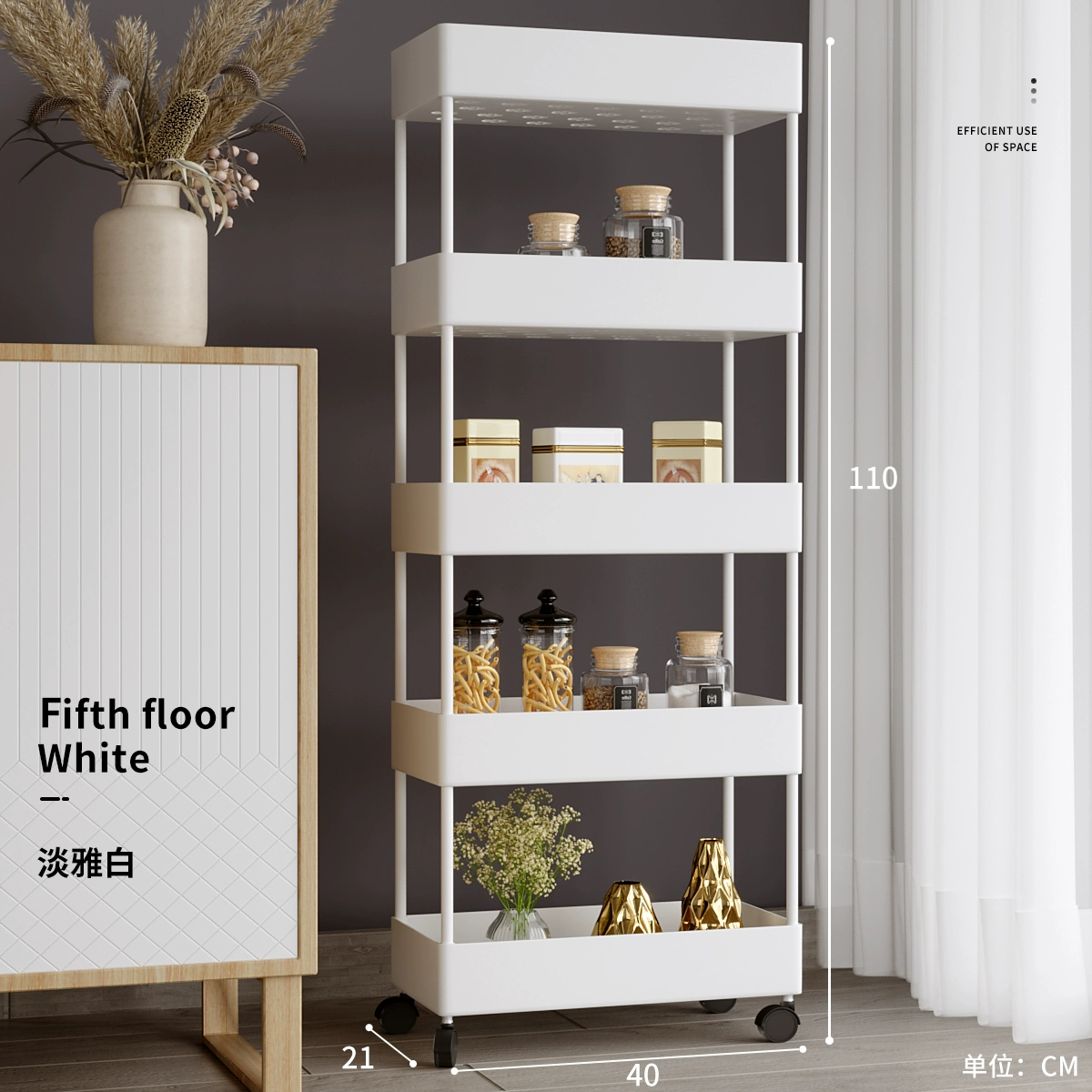 Floor-standing kitchen and bathroom snack trolley storage rack