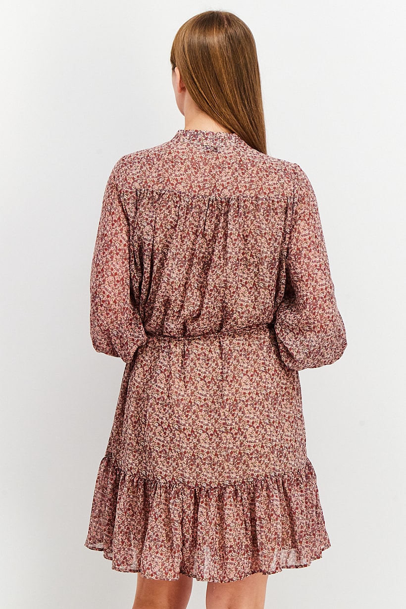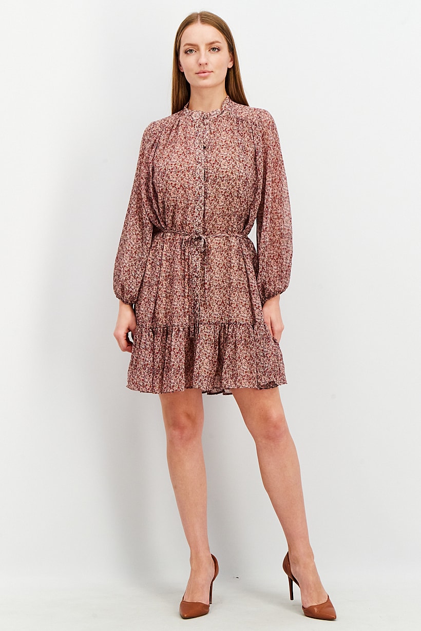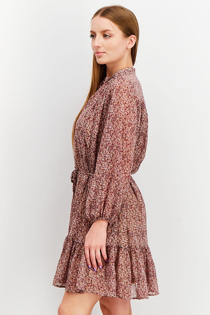 | nameOriginal | Women Floral Pattern Long Sleeve Belted Mini Dress, Purple/Pink/Red Combo |