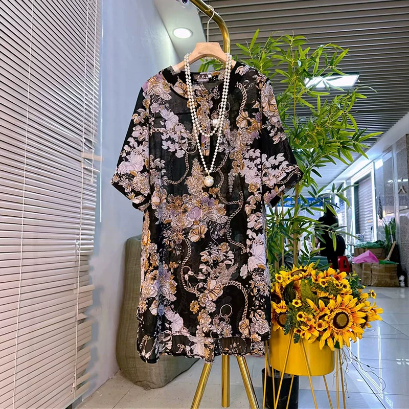 | nameOriginal | Floral blouse for fat girls in spring and autumn style with round neck and short sleeves |