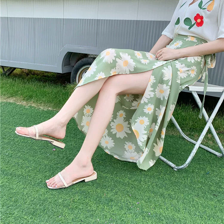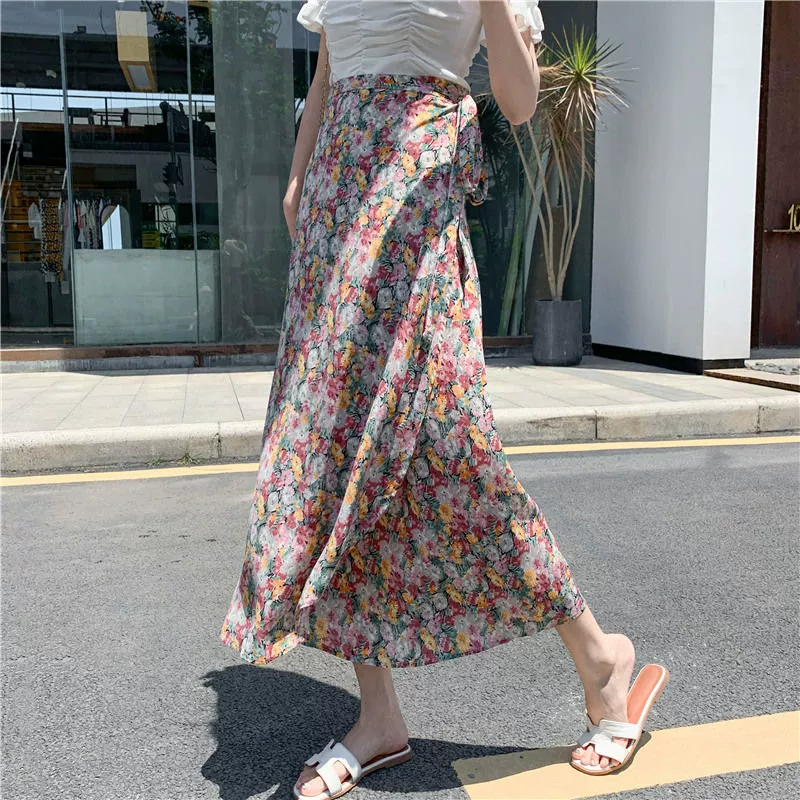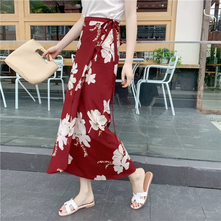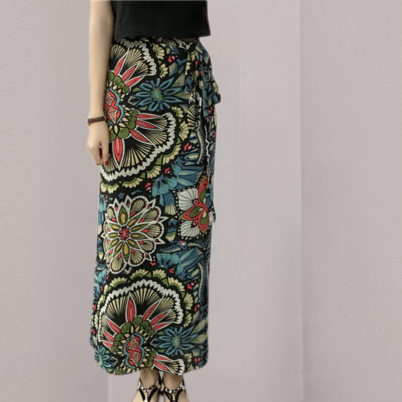 | nameOriginal | Floral bohemian lace-up chiffon one-piece maxi dress |