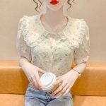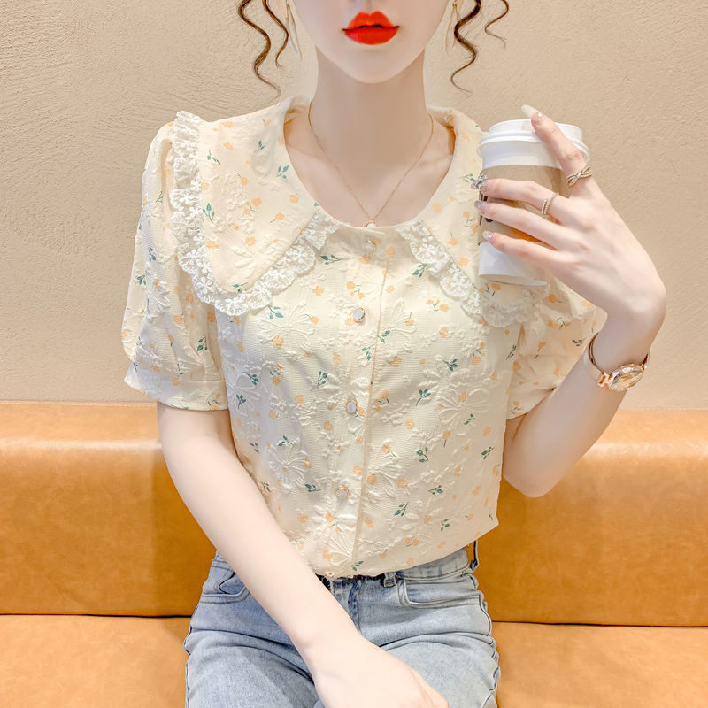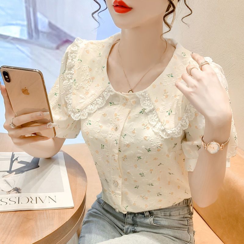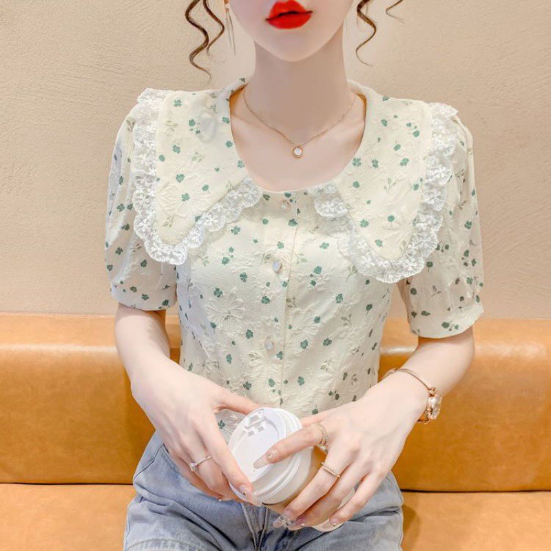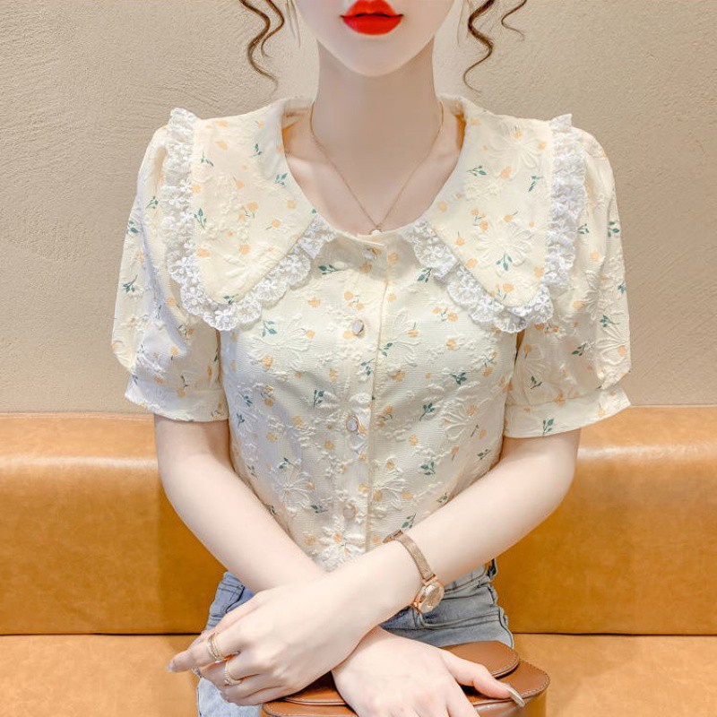 | nameOriginal | Floral Bubble Short-sleeved Shirt Women's 2024 Summer New Design Sense Niche French Style Sweet Doll Collar Top Trendy |