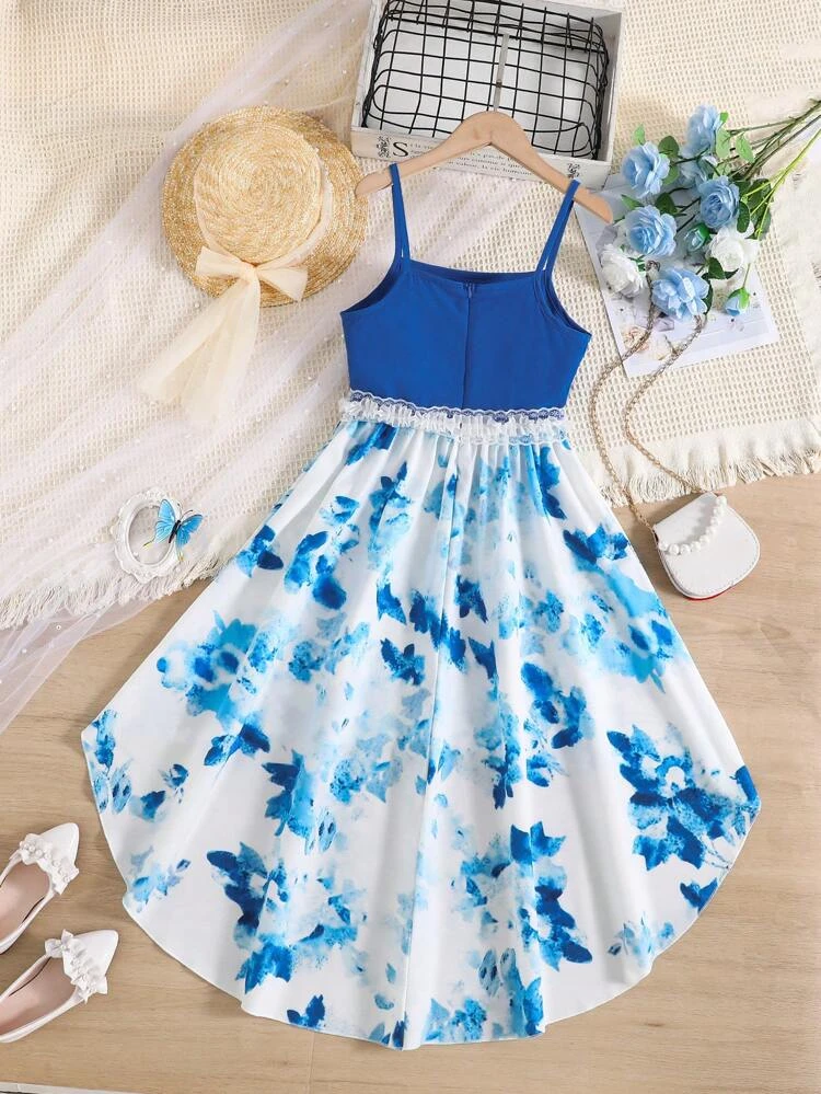 | nameOriginal | Girls Floral Print High Low Hem Cami Dress |
