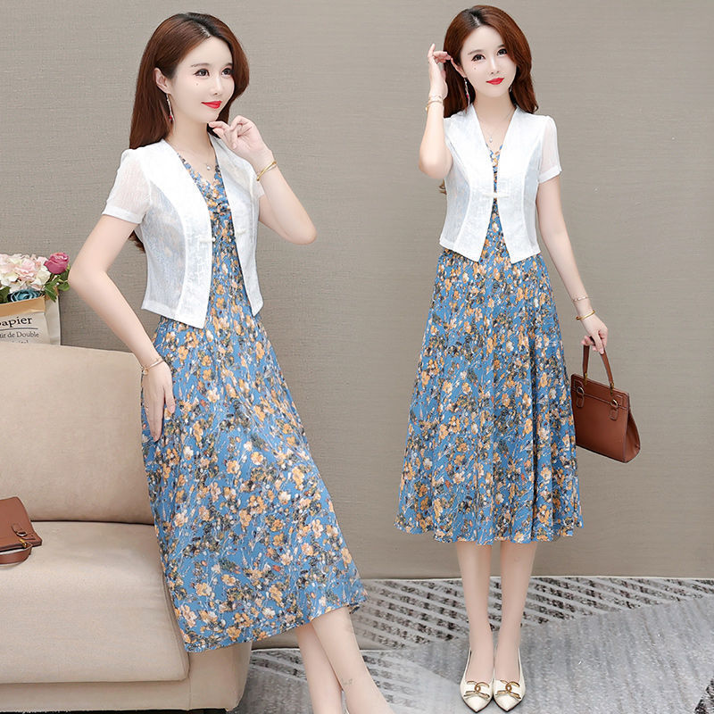 | nameOriginal | Floral Chiffon dress Women's 2024 Summer New Arrival Elegant Design Goddess Style Two-Piece Dress |