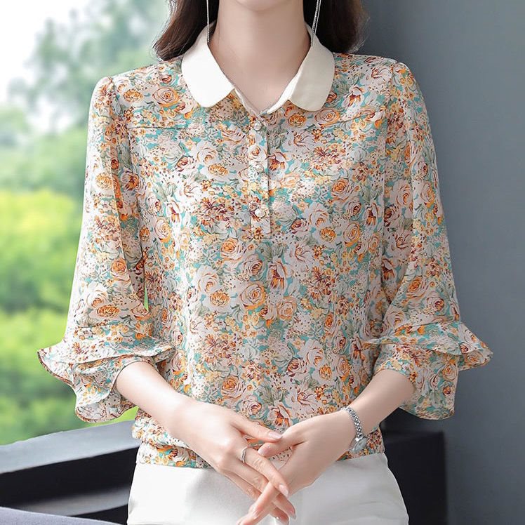 | nameOriginal | Floral Chiffon Shirt Top Women's 2022 New Spring and Summer High-end Western Style Small Shirt Belly Covering Beautiful Fashion Shirt |