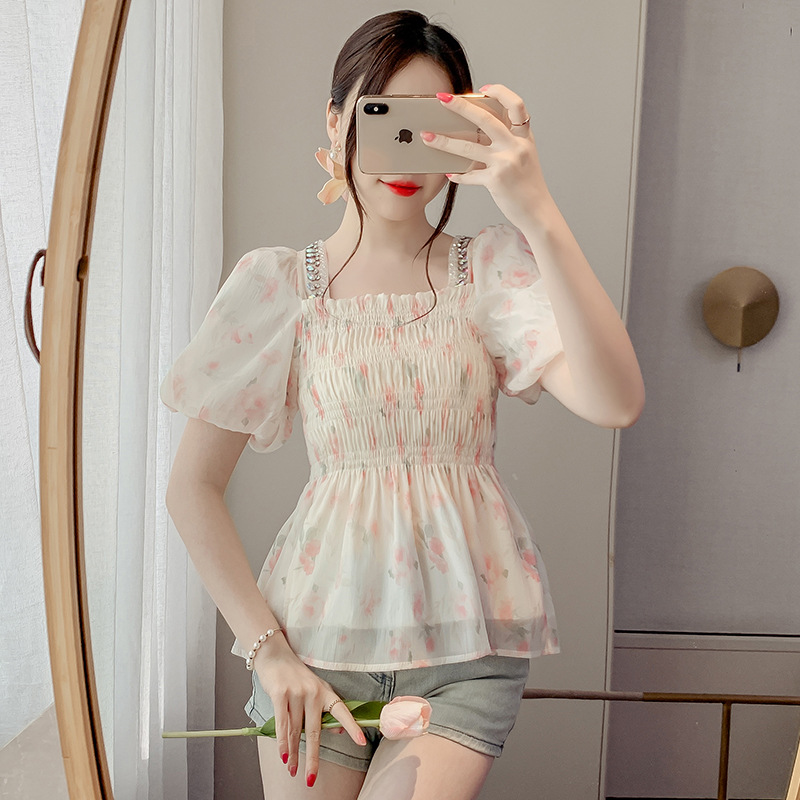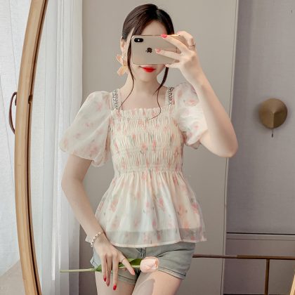 | nameOriginal | Floral Chiffon Short-sleeved Shirt 2024 New Women's Summer Stylish Small Shirt Tight Waist Belly Covering Beautiful Top |