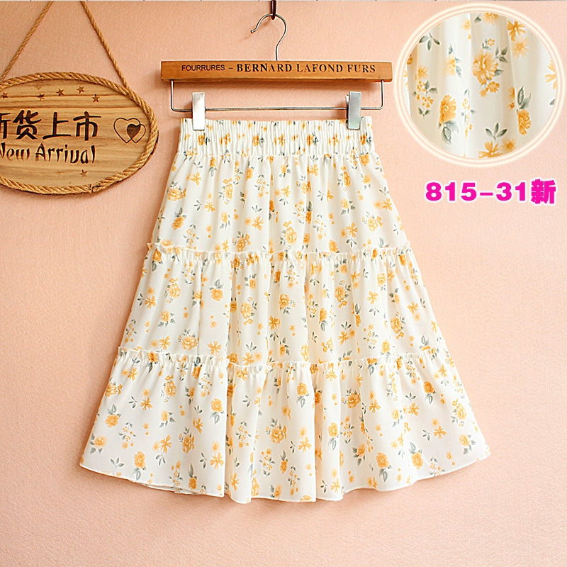 | nameOriginal | Floral chiffon skirt for women summer 2024 new high-waisted a-line splicing cake skirt for small people |