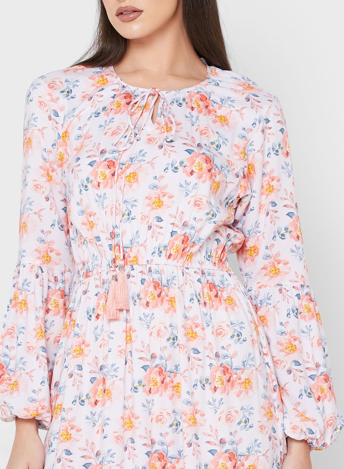 | nameOriginal | Tie Neck Floral Puff Sleeve Dress |
