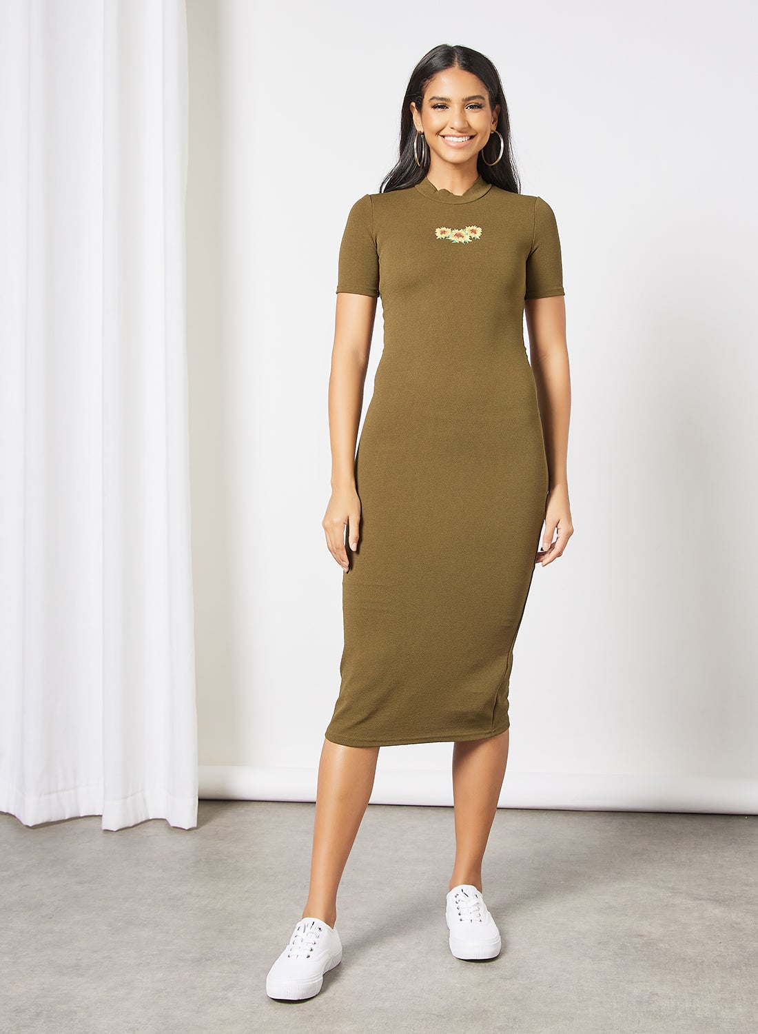 | nameOriginal | Casual Polyester Blend Short Sleeve Midi Knitted Dress With Round Neck With Floral Embroidered Long Evening Maxi Dress 94 Cements |
