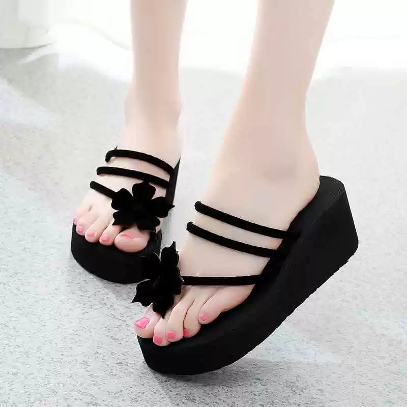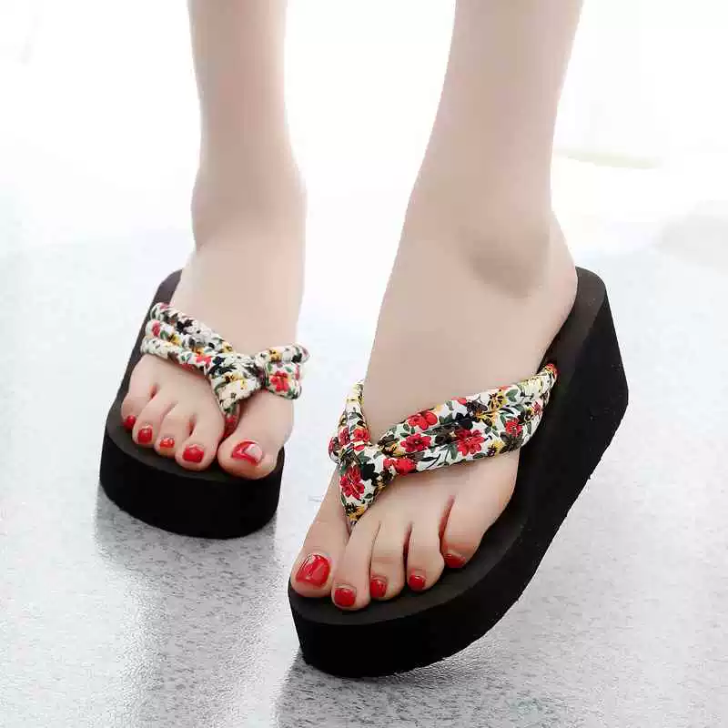 | nameOriginal | Floral flip-flops for women, thick-soled high-heeled summer beach wear, versatile fashion flip-flops, non-slip wedge heels |