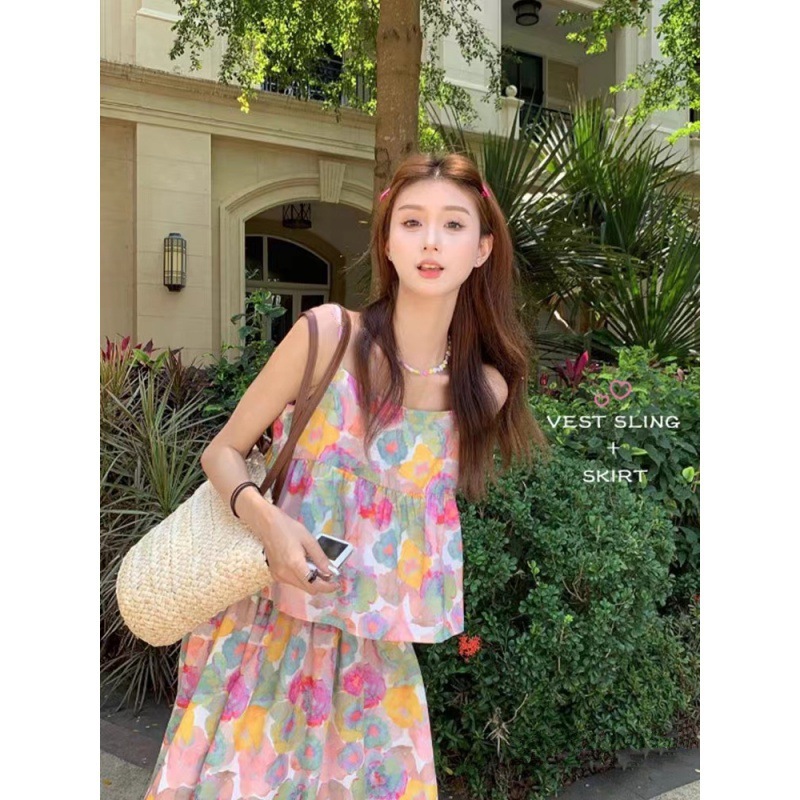 | nameOriginal | Floral French suit Women's Sling Top Summer New Skirt Elegant Skirt for Seaside Vacation |