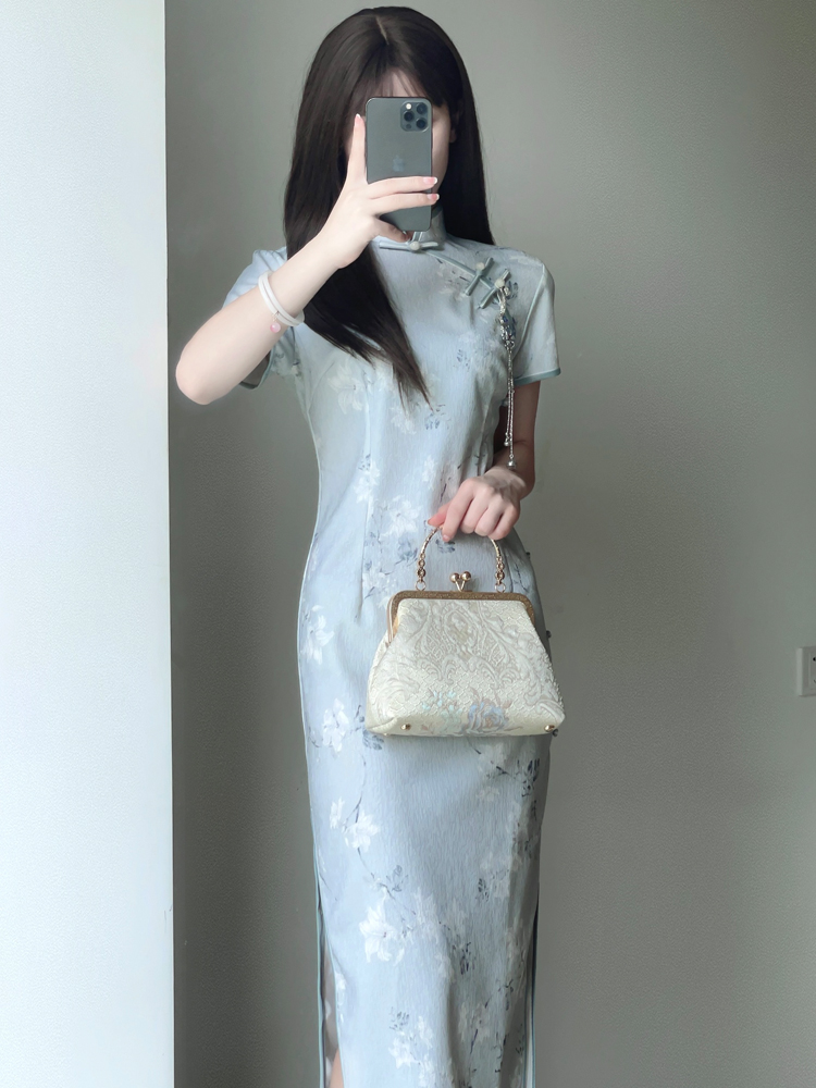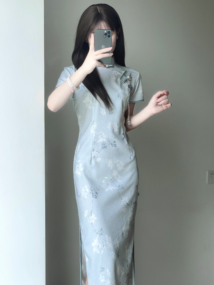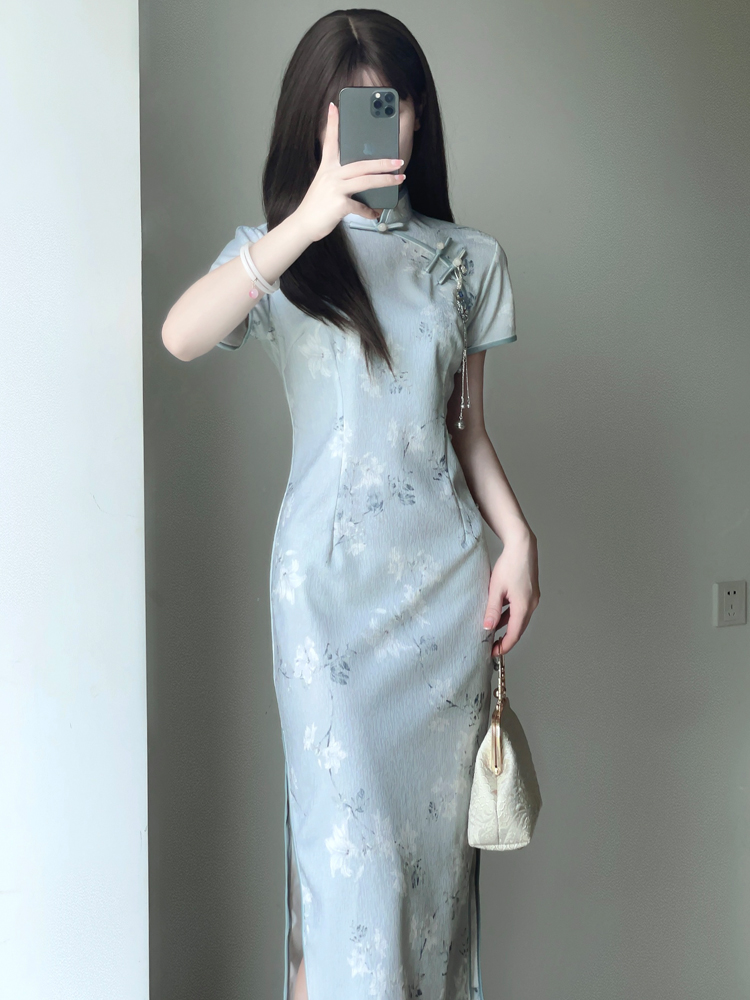 Floral Gardenia Xia New Chinese Style National Style Improved Plain Elegant Cheongsam 2024 Summer New Young Girl Slim Long