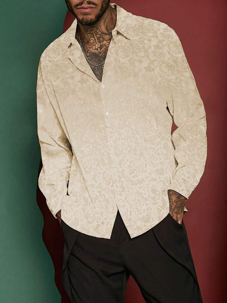 Introducing our Men’s Floral Jacquard Button Front Shirt, the perfect addition to any fashion-forward man’s wardrobe. This shirt features a unique floral jacquard pattern that adds a touch of sophistication and style to any outfit. The button front design allows for easy wear and versatility, making it perfect for both casual and formal occasions. Made with high-quality materials, this shirt is not only stylish but also comfortable and durable. The slim-fit cut ensures a flattering and modern look, while the long sleeves provide coverage and warmth. Whether you’re dressing up for a special event or simply want to elevate your everyday style, our Men’s Floral Jacquard Button Front Shirt is the perfect choice.