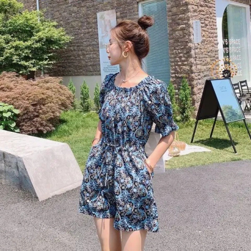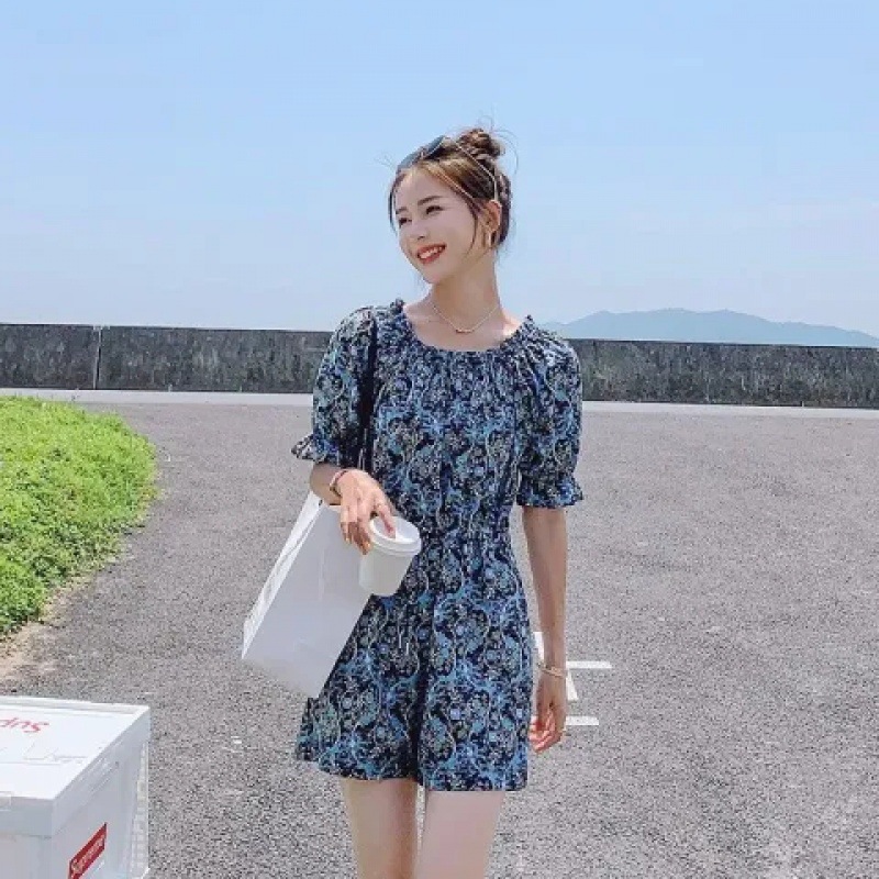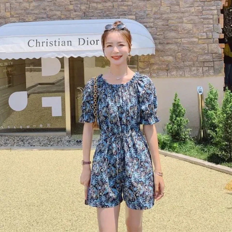 Floral Jumpsuit Women’s Summer 2024 New High Waist Slimming Loose Lace-up Waist Wide Leg Shorts Jumpsuit