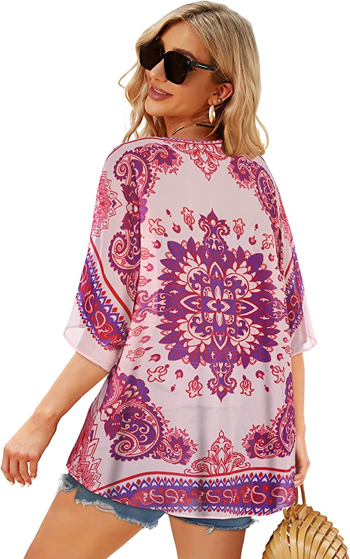 | nameOriginal | Women's Floral Print Puff Sleeve Kimono Cardigan Loose Cover Up Casual Blouse Tops |