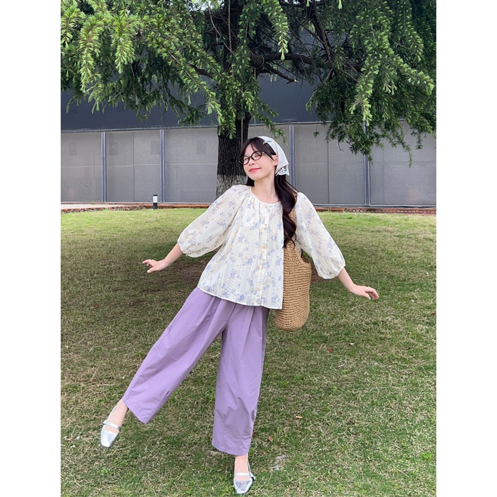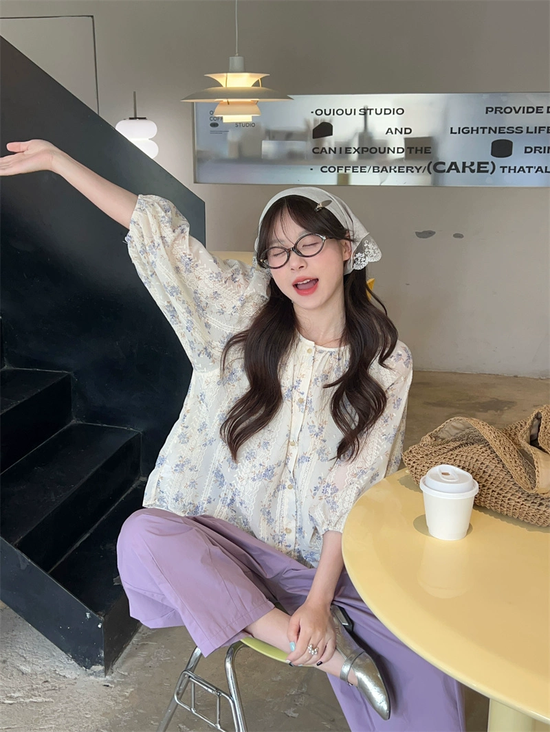 Floral lace splicing loose and chic shirt
