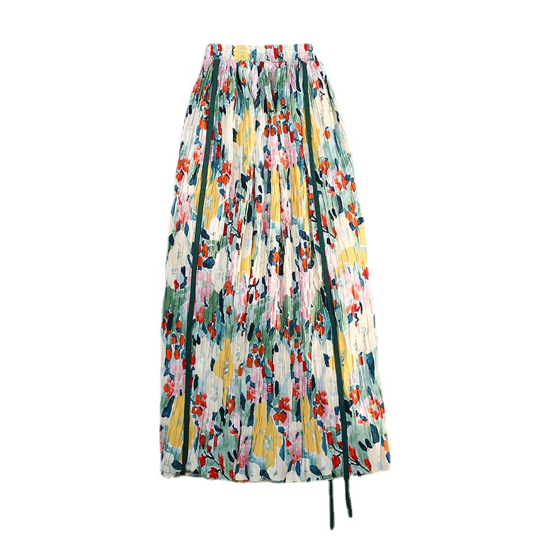 | nameOriginal | Floral Pleated Skirt Women's Spring and Summer 2024 New Gentle Little A- line Loose High Waist Midi Skirt |