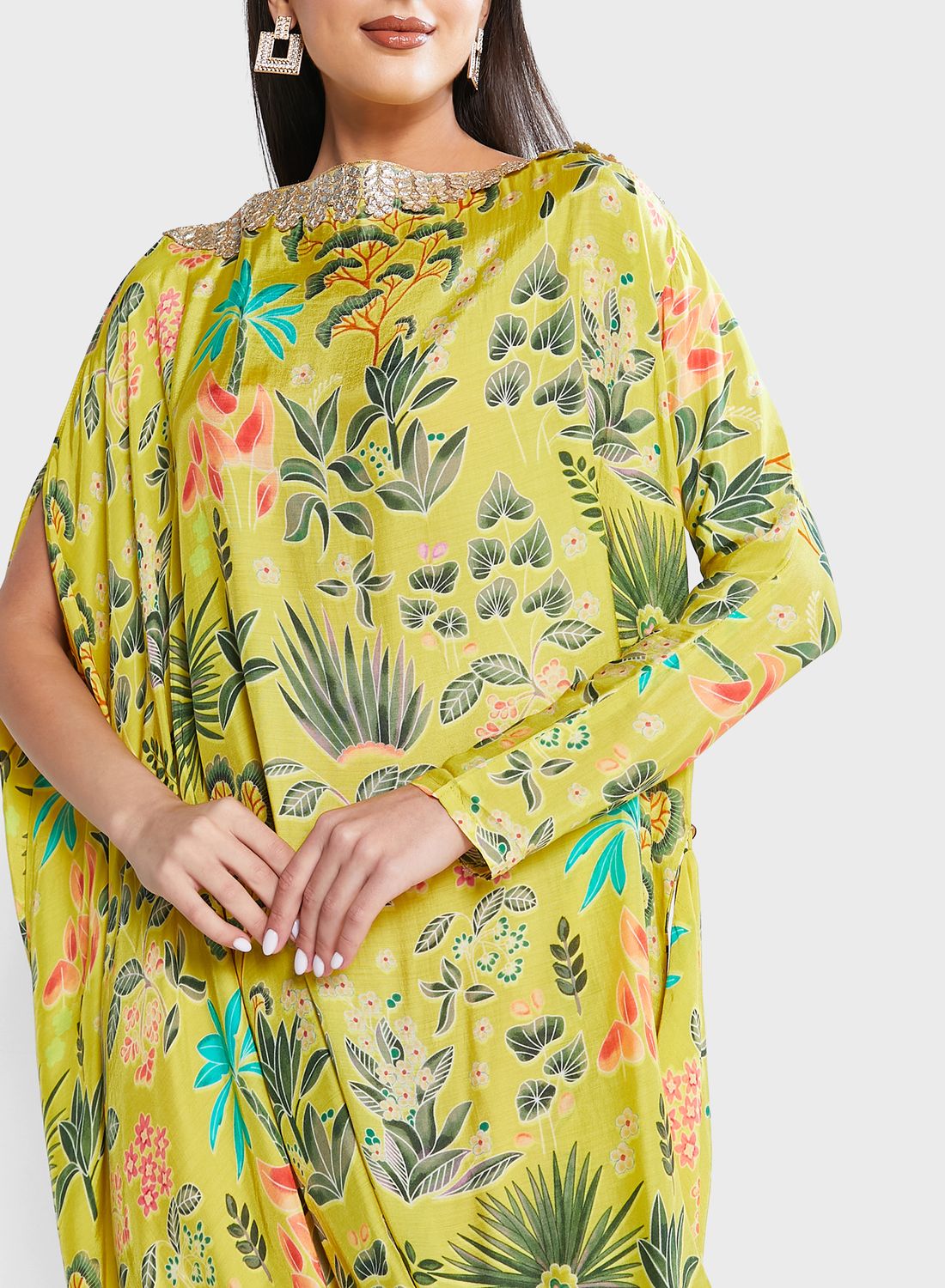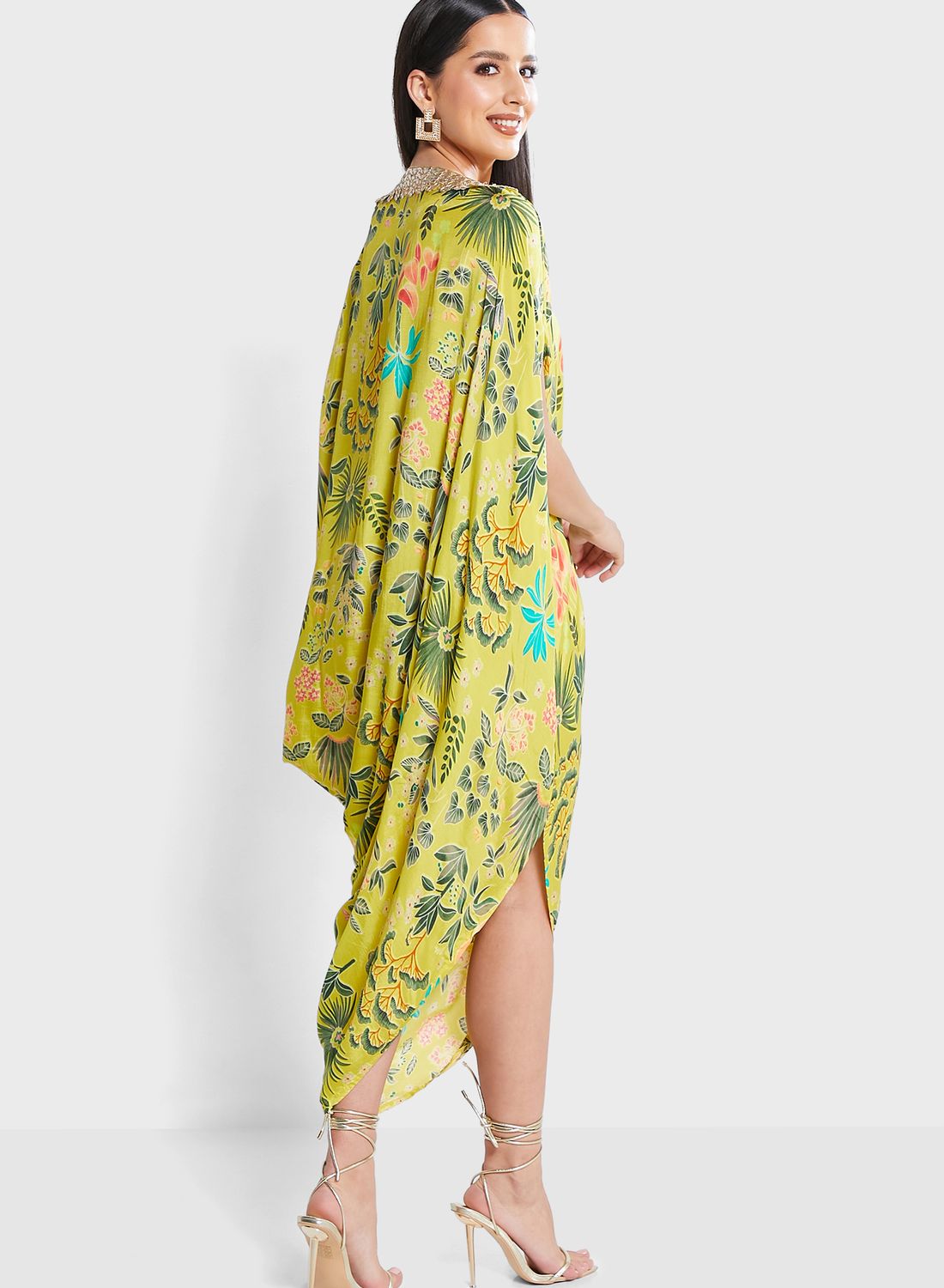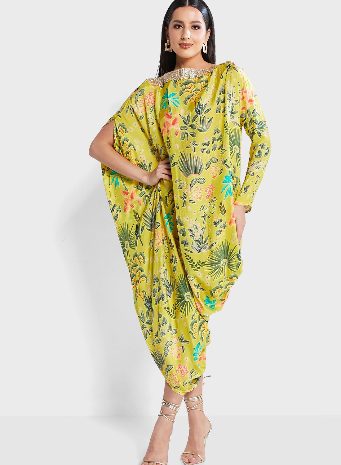 | nameOriginal | Embellished Cowl Neck Floral Print Dress |