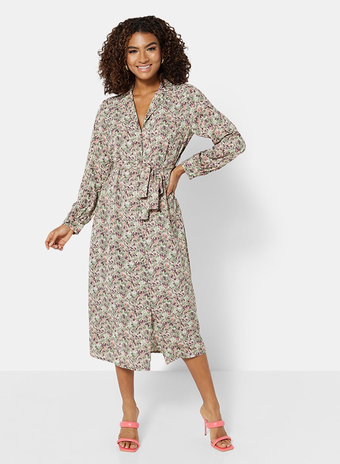 | nameOriginal | Lapel Collar Floral Print Dress Pumice Stone |