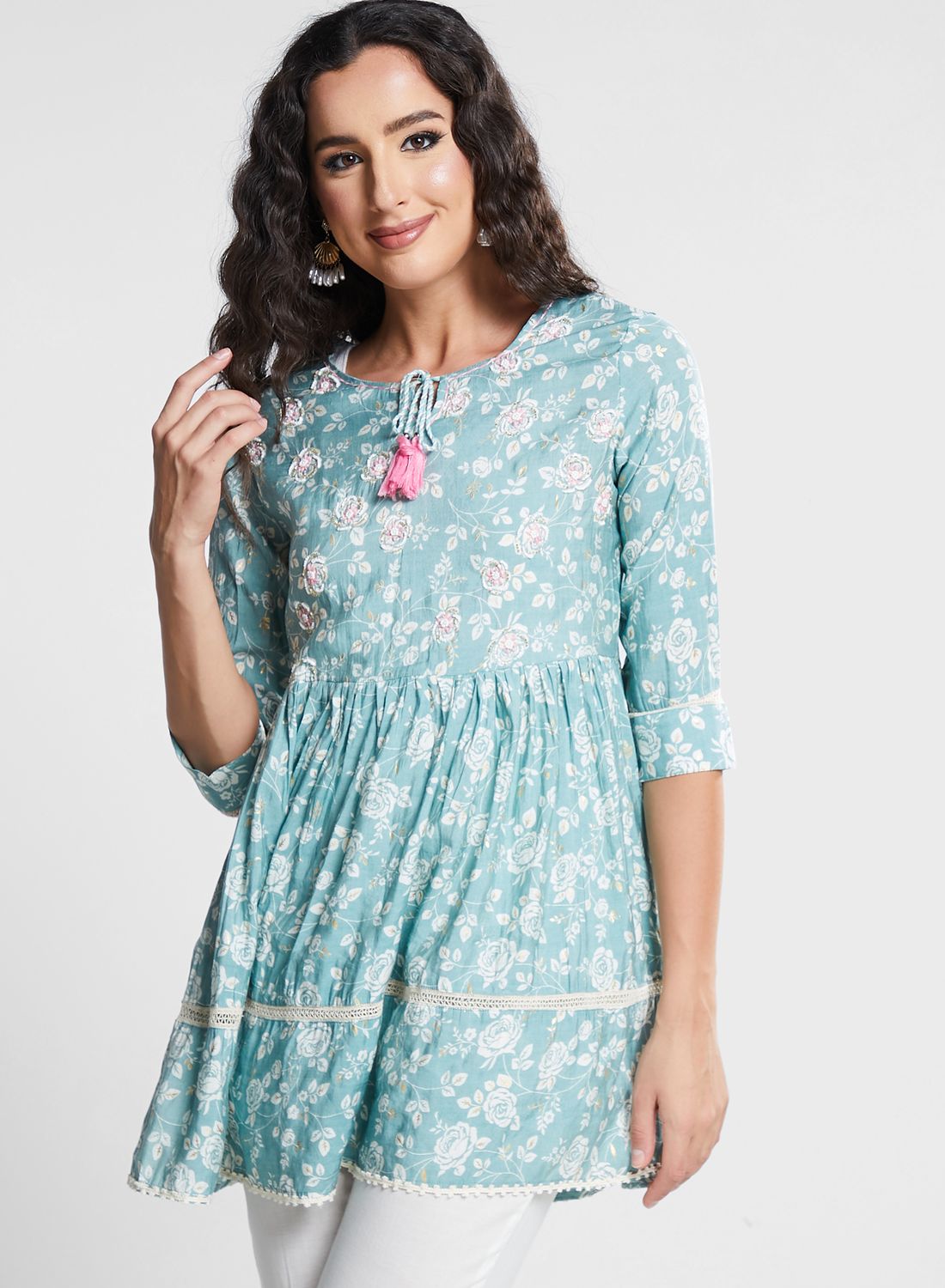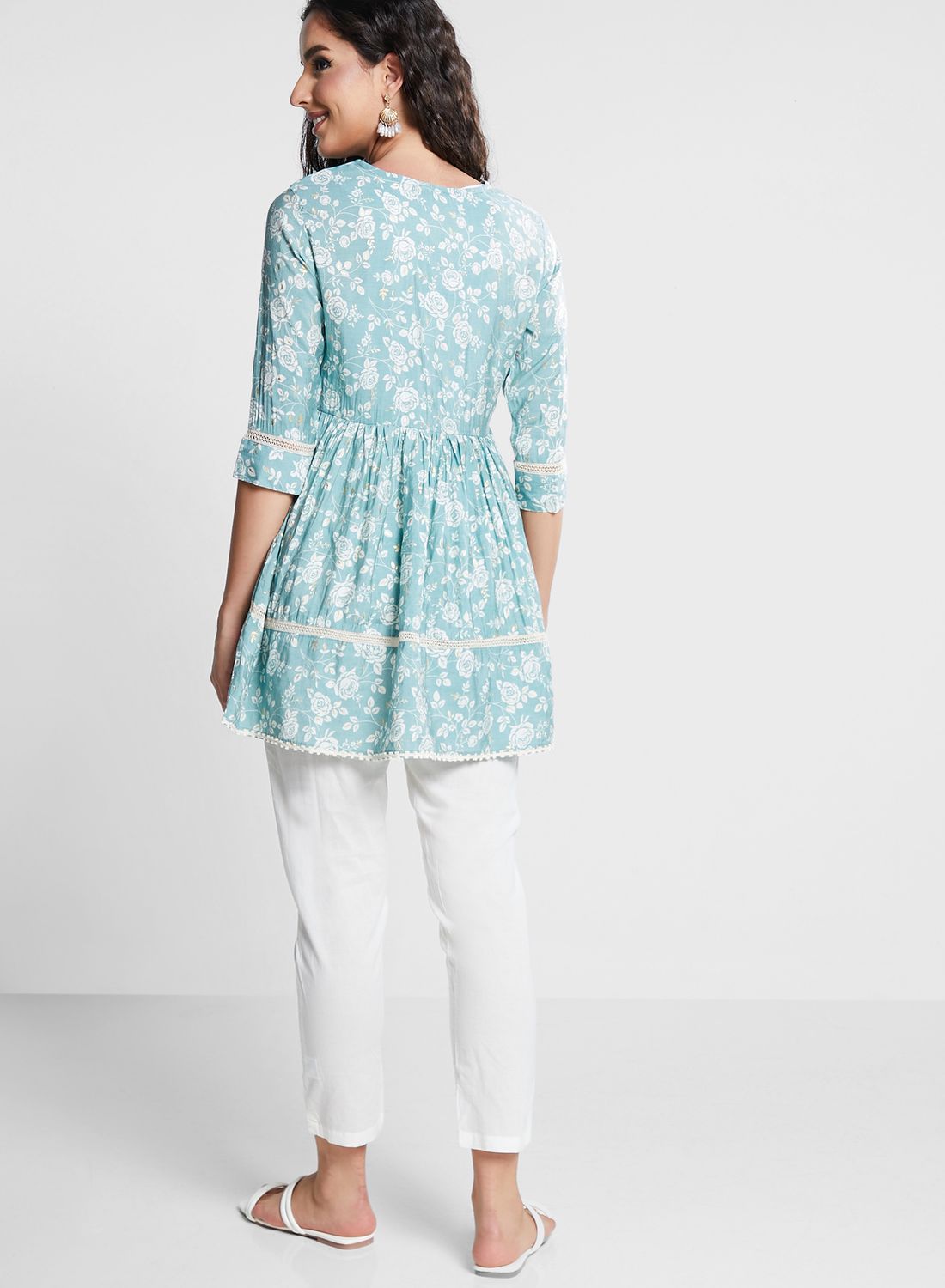 | nameOriginal | Tie Detail Tiered Floral Print Kurti & Pants Set |