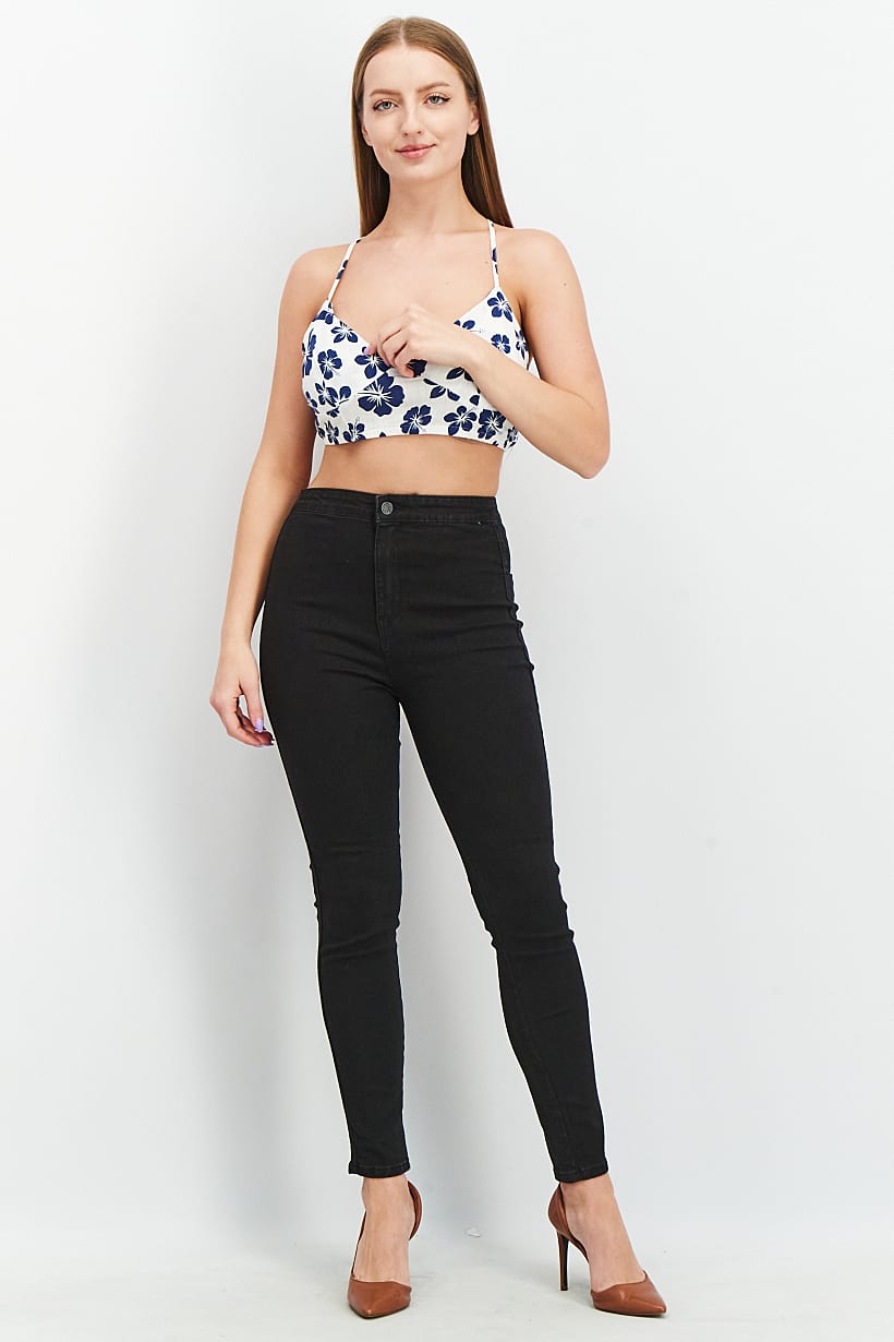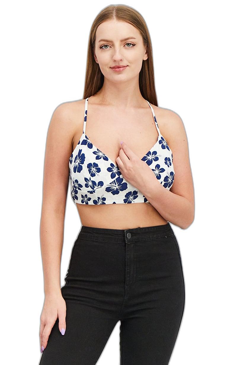 | nameOriginal | Women V-Neck Sleeveless Floral Print Crop Top, White/Blue |
