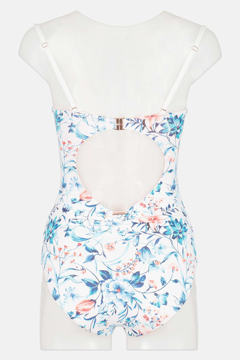 Floral Print Underwired One Piece with Padding for Women in White Combo.