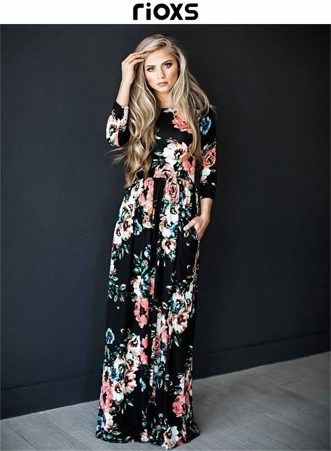 | nameOriginal | Women Casual Loose Maxi Dress Long Sleeve Floral Printed Long Dress With Pockets |