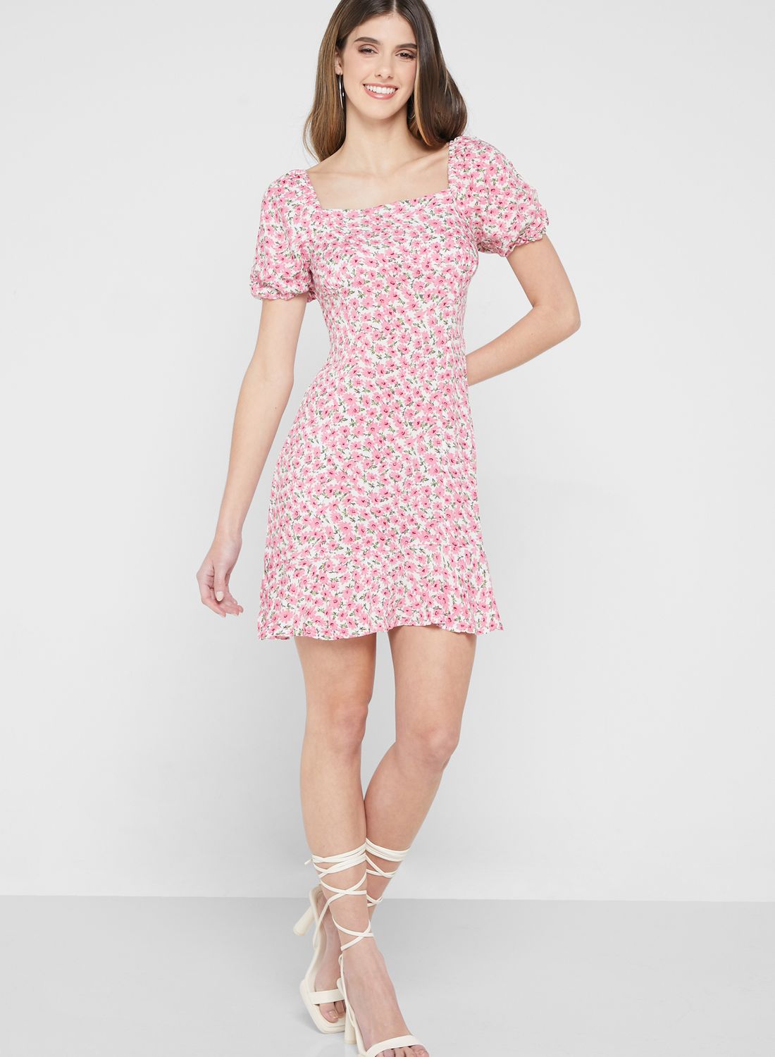 | nameOriginal | Short-Sleeved Floral Ruffled Dress |