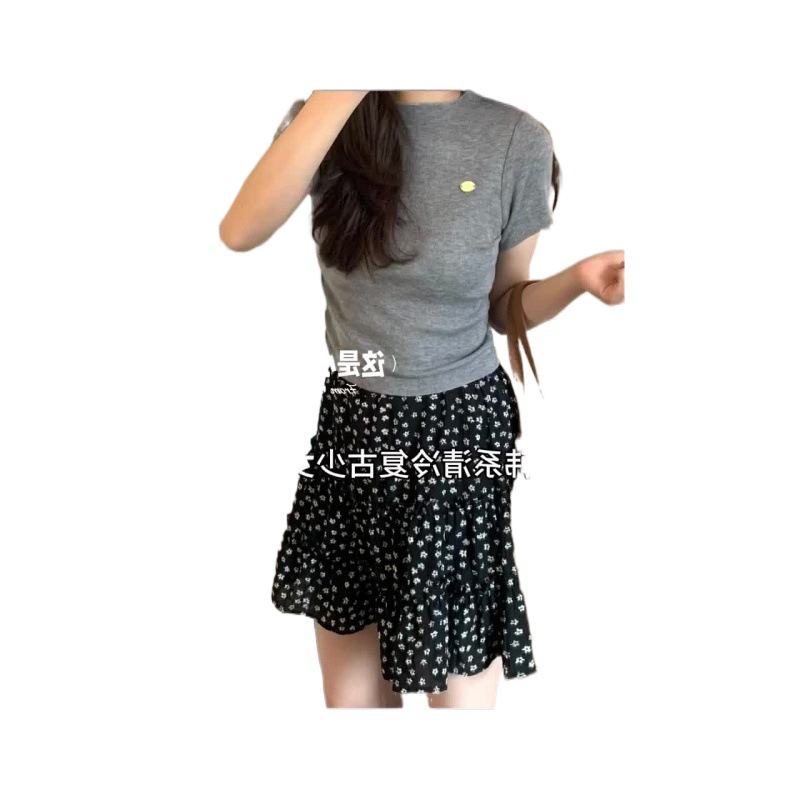 | nameOriginal | Floral Skirt Cake Skirt Women's Spring All-match A- line Short Skirt Short-sleeved Knitted T-shirt Two-piece Suit Elegant Western Style |