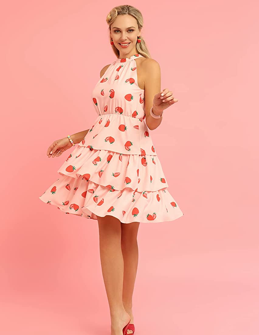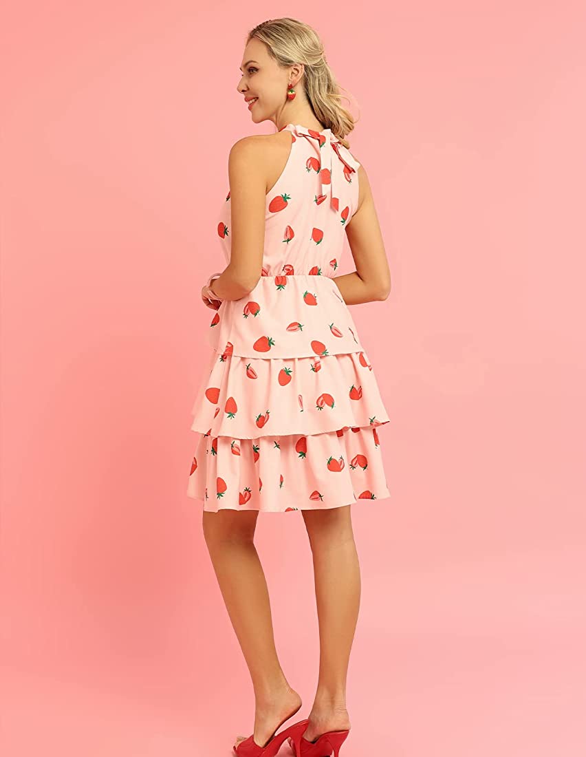 | nameOriginal | Belle Poque Women's Halter Neck Tiered Ruffle Floral Short Dress Vintage Sleeveless A line Swing Layered Mini Dress |