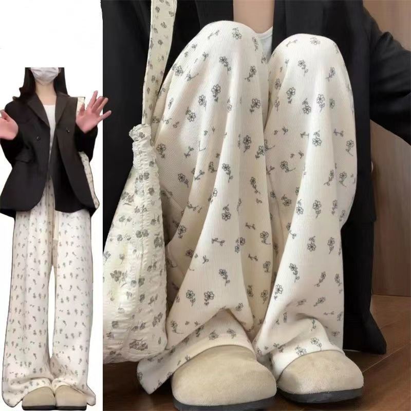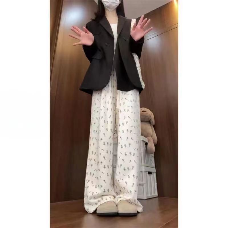 | nameOriginal | Floral Wide-leg Pants Women's Summer Thin 2024 New High Waist Slimming Loose Small Dose Casual Straight Pants |