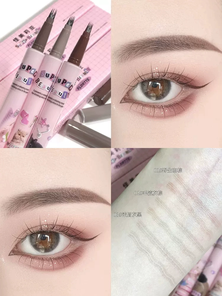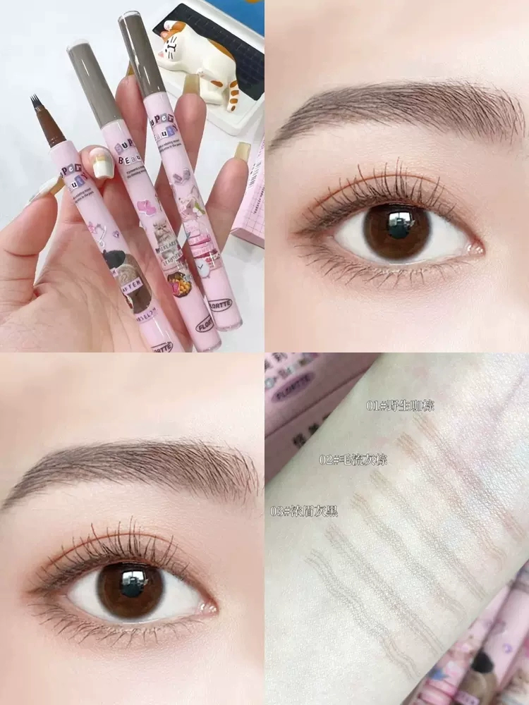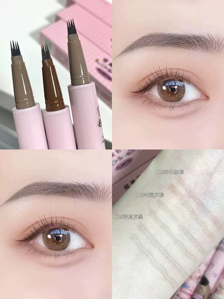 Floria four-pronged eyebrow pencil, gray brown, waterproof, long-lasting, non-fading, ultra-fine head, extremely fine wild eyebrows, special for lazy people