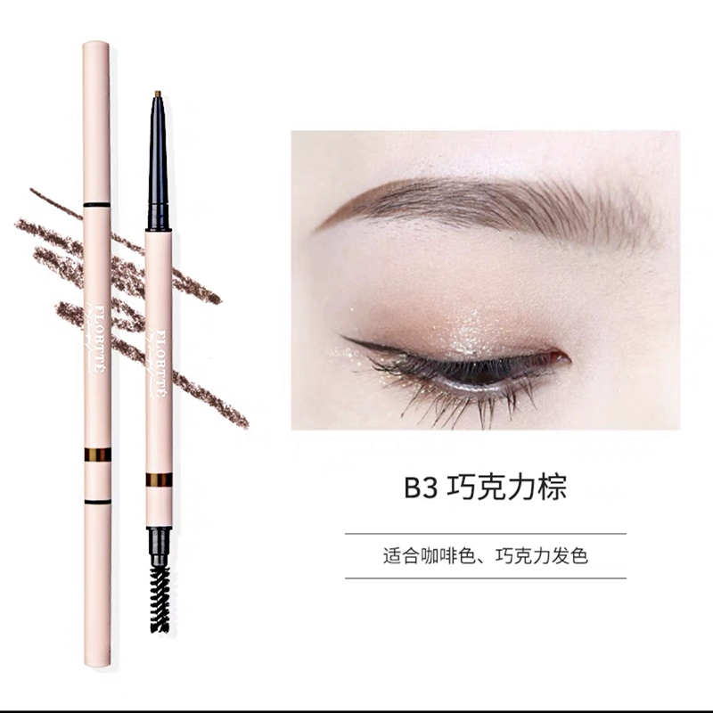 FLORTTE double-ended ultra-fine eyebrow pencil for female beginners is naturally waterproof, sweat-proof, non-fading and long-lasting