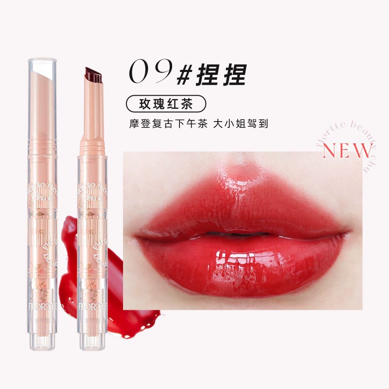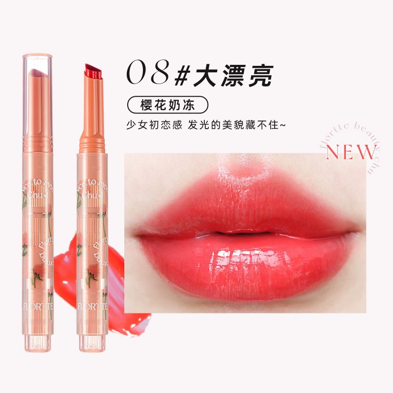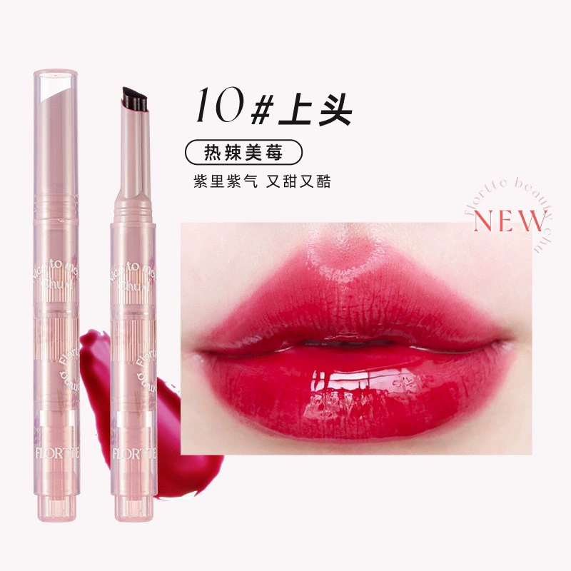 FLORTTE/Hua Lilia Lipstick Pen’s first kiss love stick fruit jelly lip balm water light mirror lipstick lip glaze female