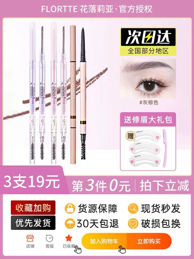 Flortte flower lolia double-headed ultra-fine eyebrow pencil pink flower fallia ultra-fine head for women waterproof and long-lasting without fading